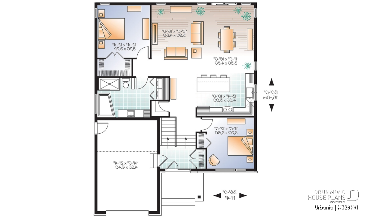 Inspired by the popular 3281 model, this version is even roomier with its 9’ ceiling throughout the main level and 2 additional feet of depth to create a home that measures 38’ wide x 50’ deep with a 14’ x 21’ garage.