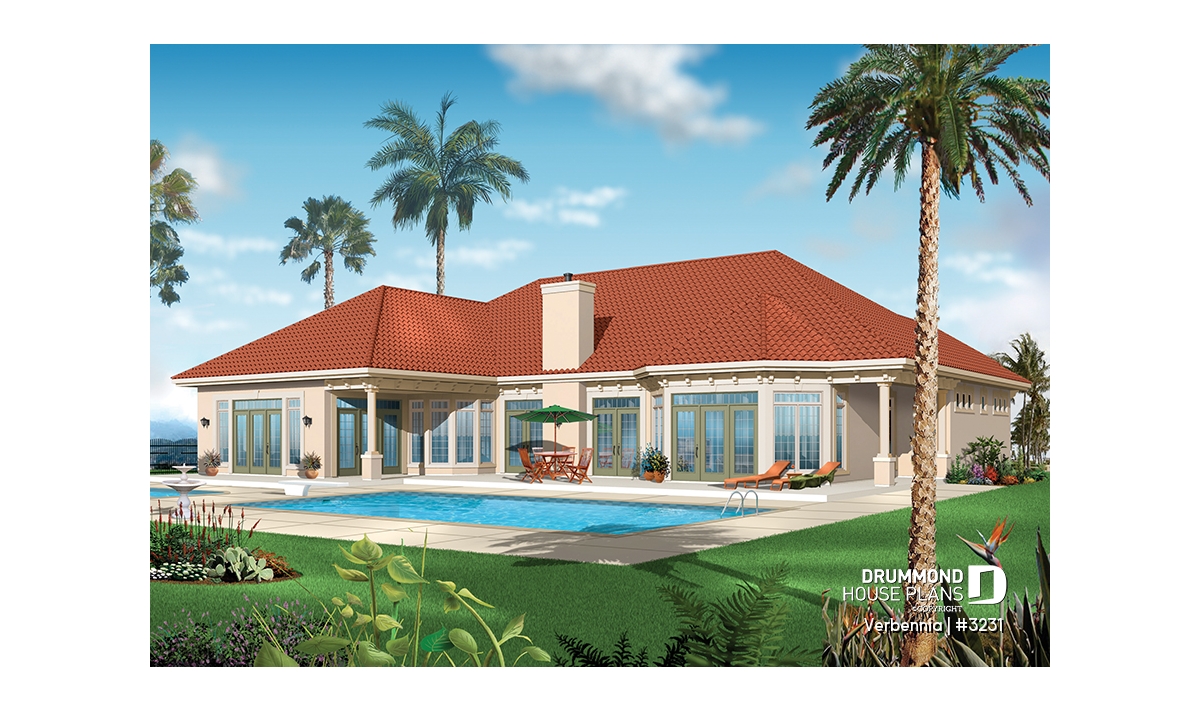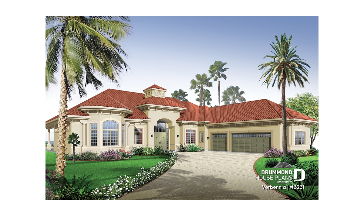 Arched ceiling at 13' max in main entrance. Ceiling at 10' everywhere, except for master suite and family room. Abundant windows at rear. Built-in shelves or storage in family room, kitchen, office, and bedroom 1. Fireplace in family and living rooms. Superb master suite with great storage and remarquable bathroom. Well organized kitchen with island / lunch counter and well illuminated dinette area. Three-car garage.