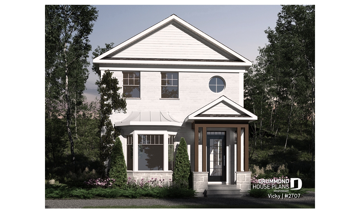 Small modern Victorian-inspired house, very attractive for narrow lots.