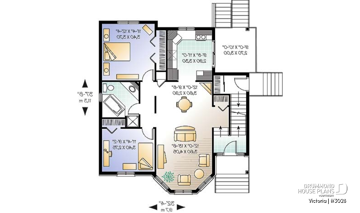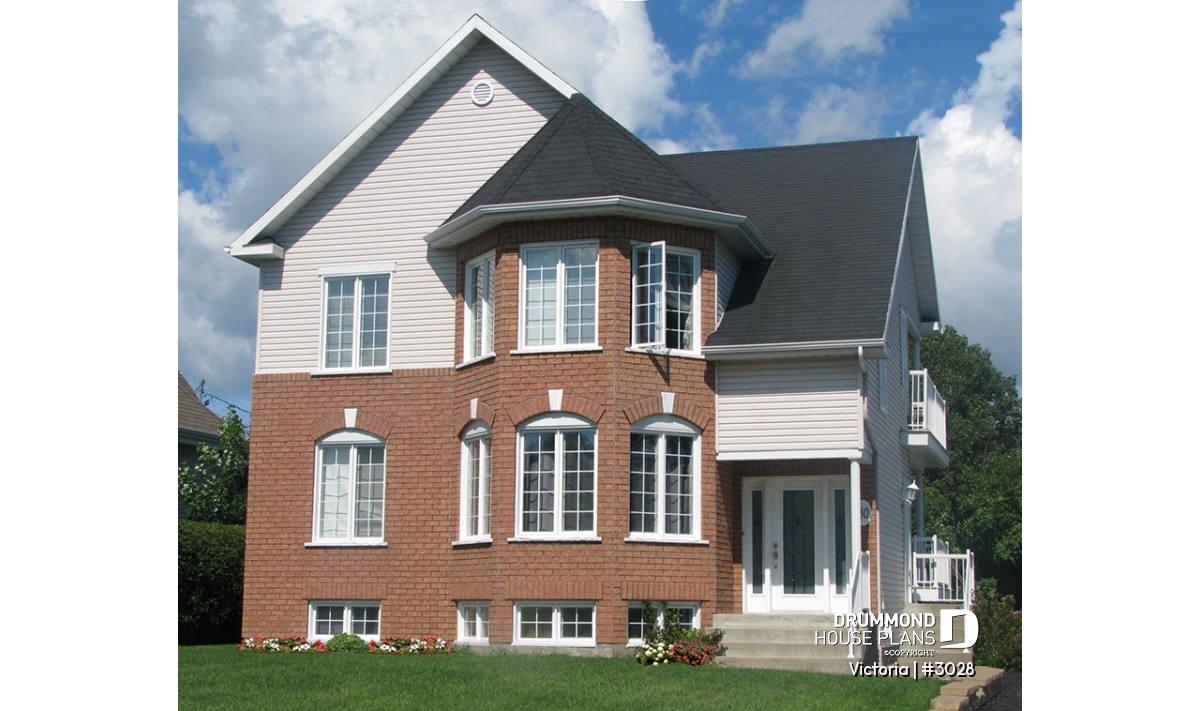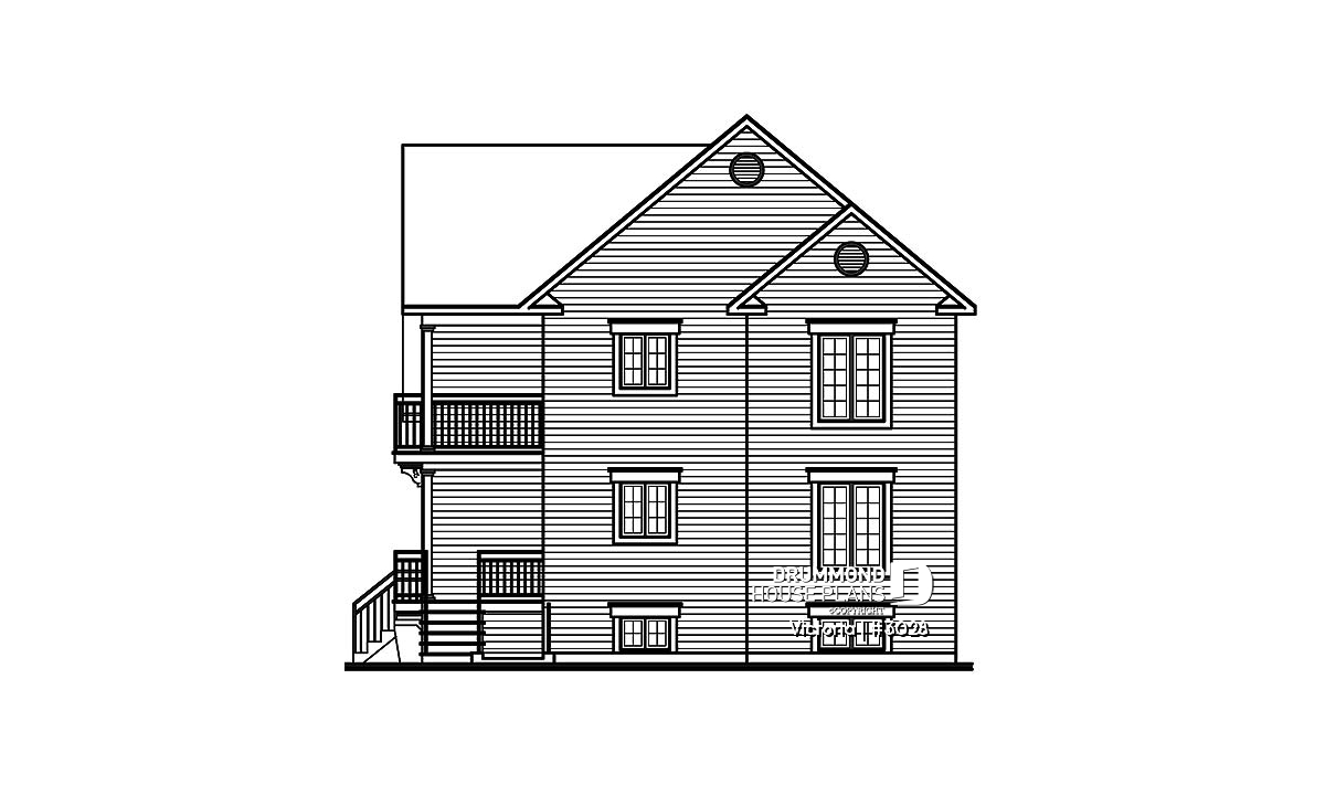 Covered main entrance, covered rear balconies for both units, abundant fenestration.