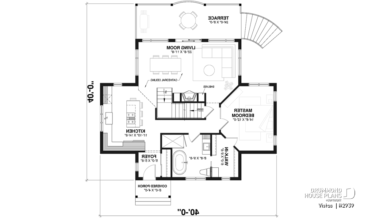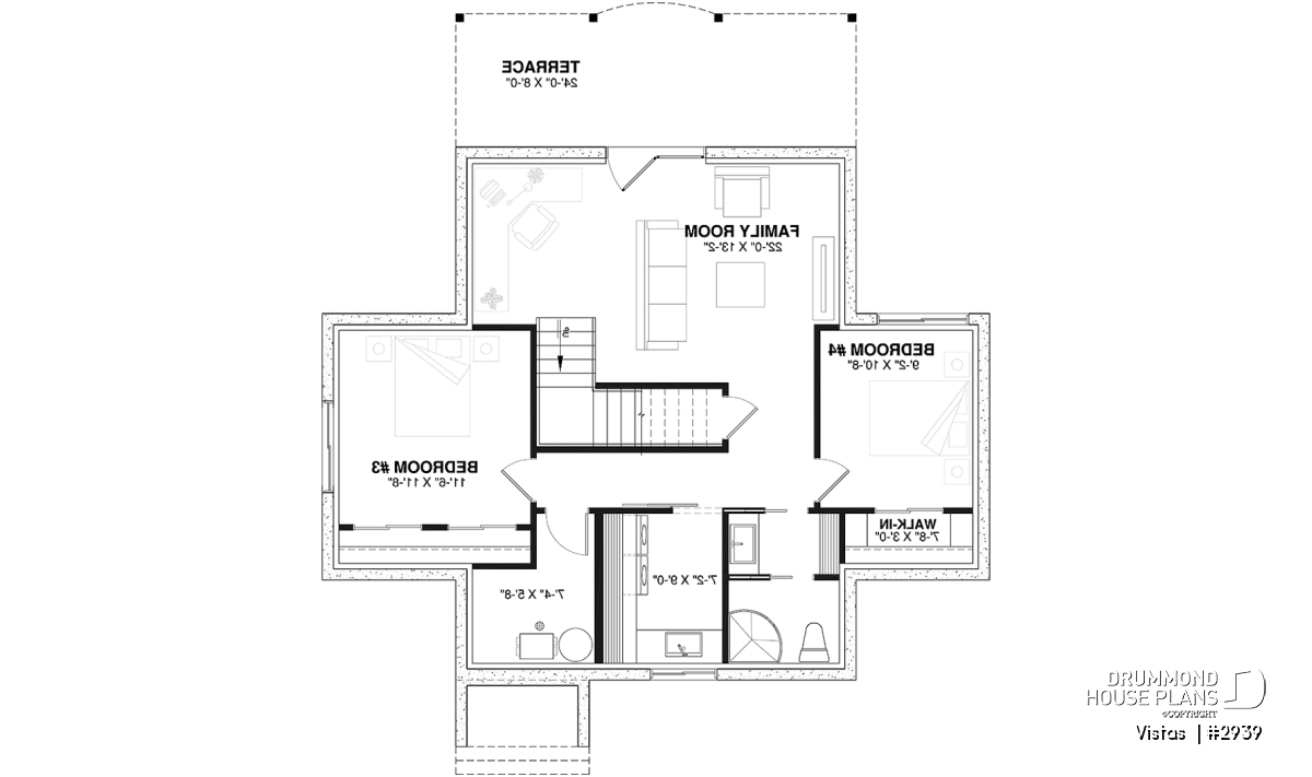 This member of our collection is much appreciated by owners of a panoramic lot. Because of the several rooms which offer a view of the scenery, this plan is especially well suited to this kind of scenery.