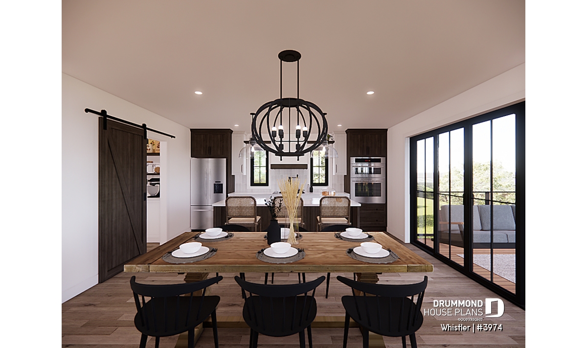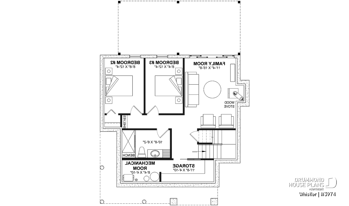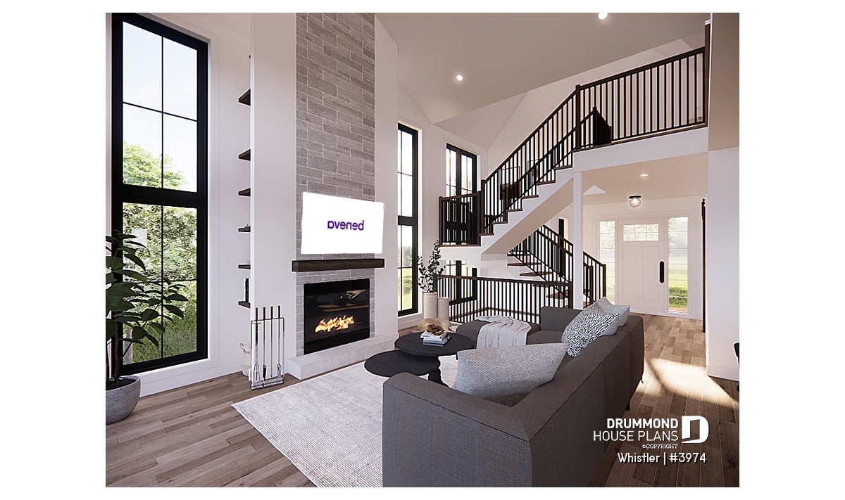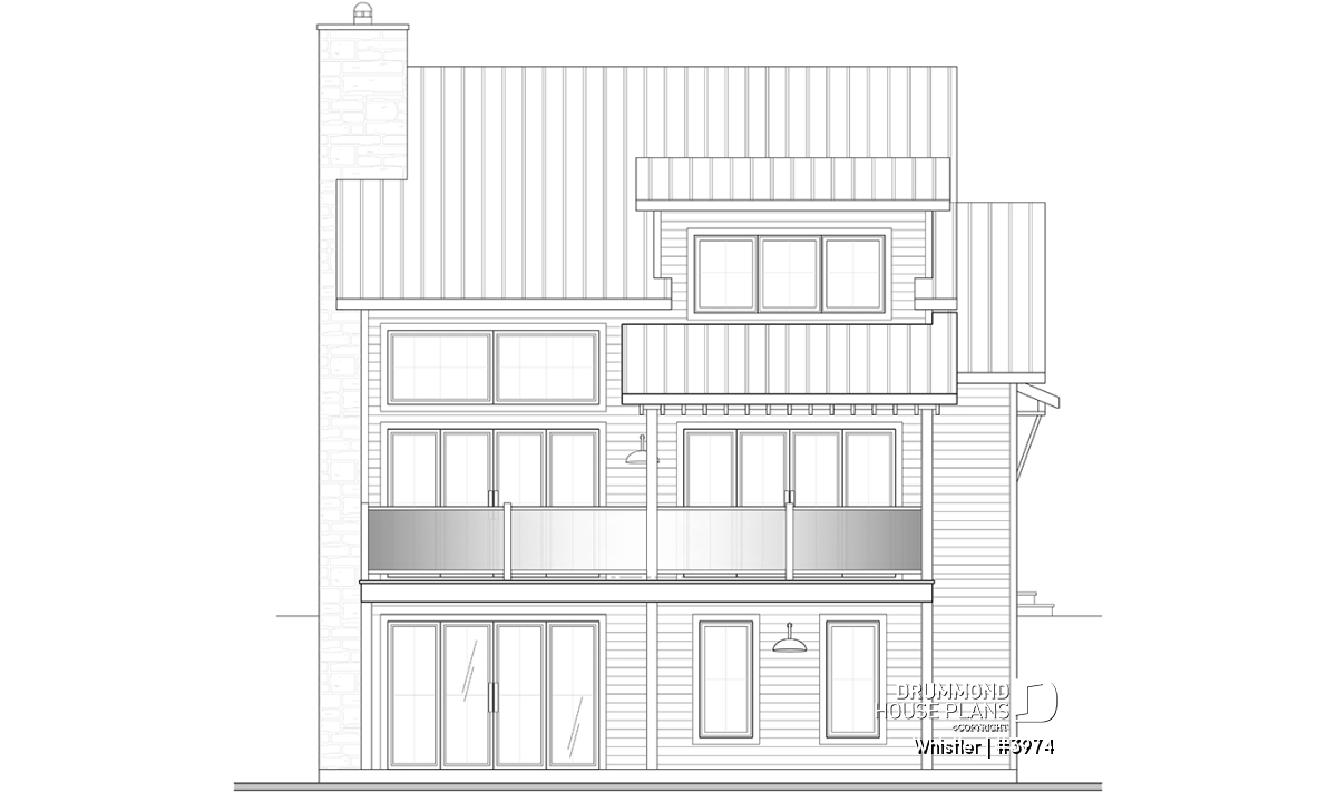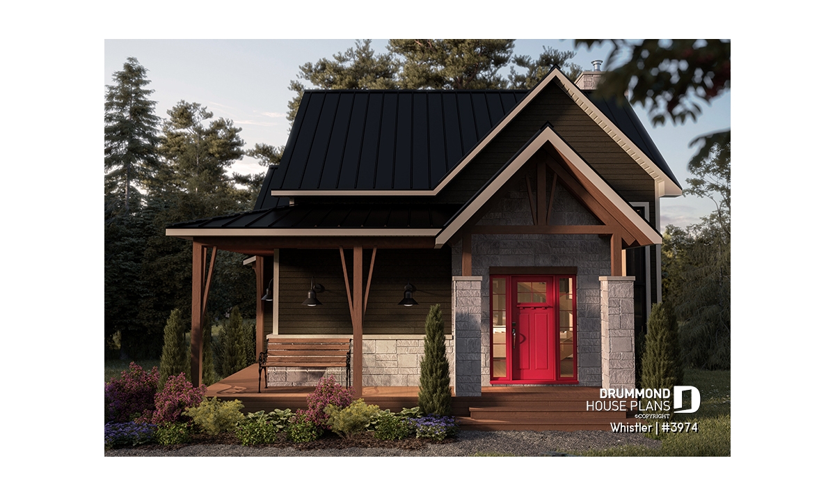 House plan WHISTLER (#3974) is remarkable for its small rustic cottage look and ski lodge style. With finished spaces on 3 floors, including a walkout basement, it nevertheless offers all the spaces required for a family of 4 people!