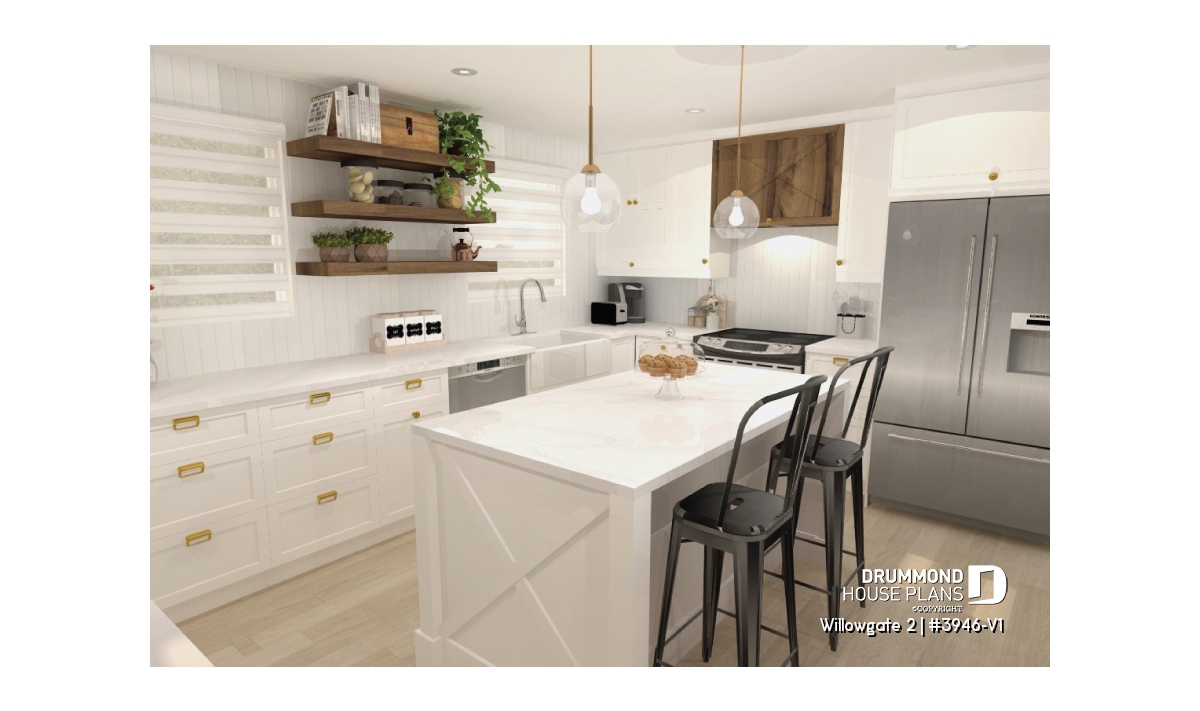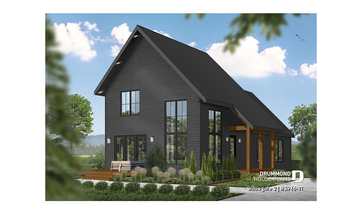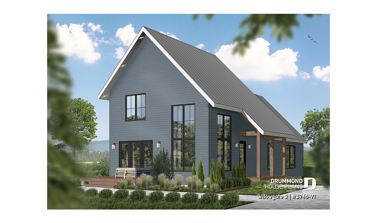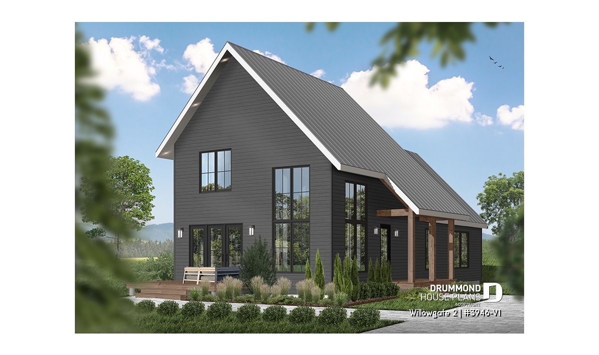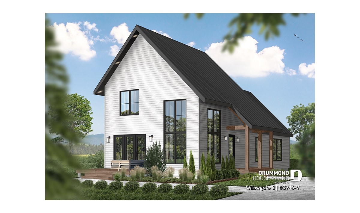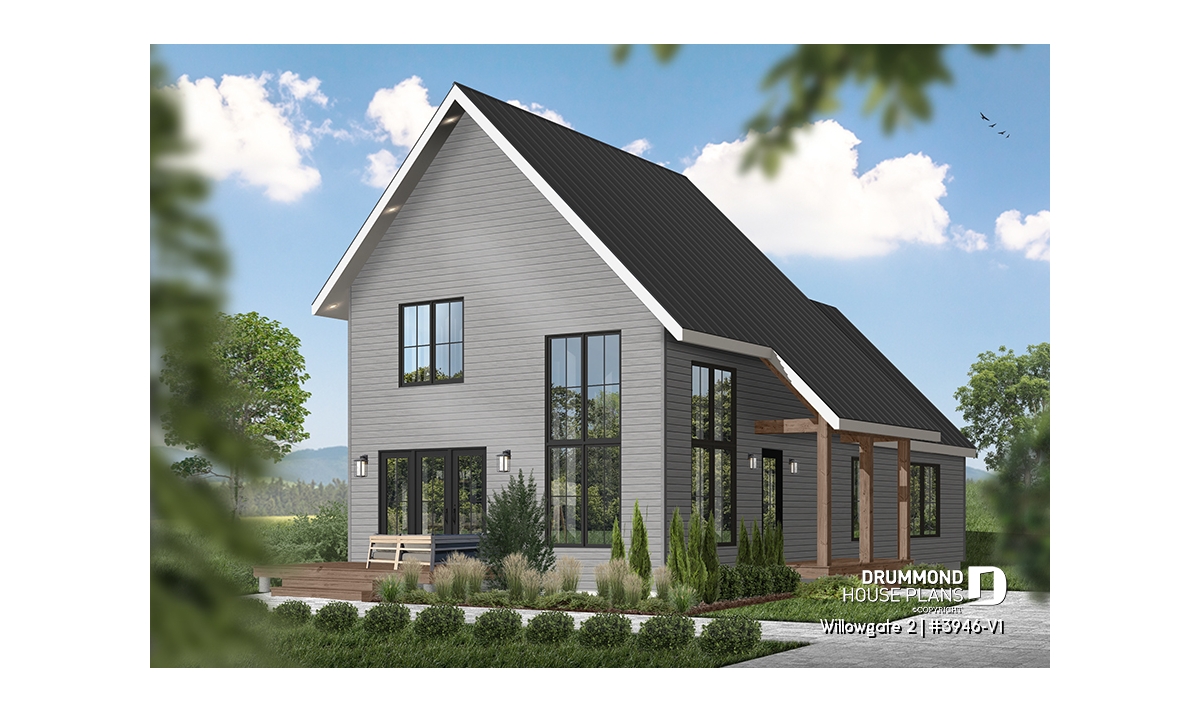 The WILLOWGATE 2 (#3946-V1) house plan offers a striking blend of modern Scandinavian design, natural light and functional living. Designed as a 3-bedroom home or cabin, this plan features 1,512 square feet of well-organized space, abundant windows and a layout perfectly suited for both everyday living and vacation retreats.