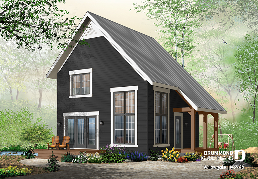 The Willogate (#3946) house plan offers a Scandinavian-inspired cabin design that blends clean lines, warmth and simplicity. With its compact 24’ x 24’ footprint, this plan is designed for efficient construction while maximizing natural light and scenic views—an essential feature for a modern cabin or vacation home.