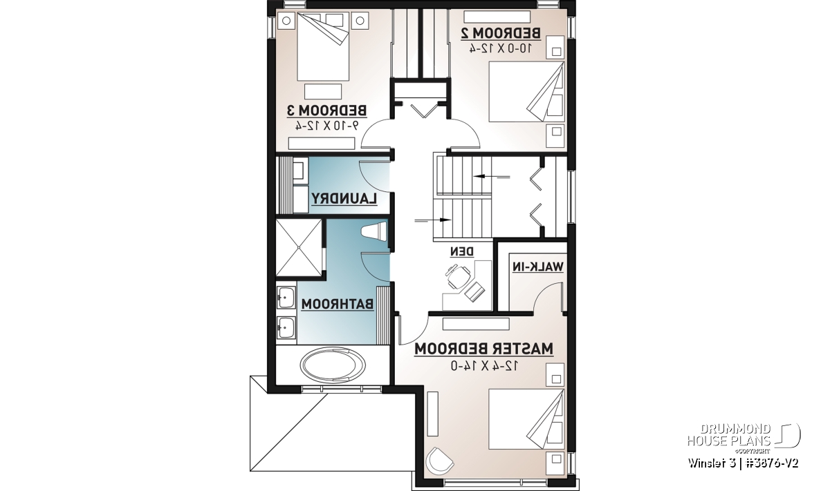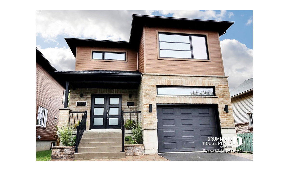 Plan number 3876-V2, also called Patriot 3, is a slightly enlarged version of the original plan number 3876. In addition, the laundry room has been relocated on the second level for convenient access to the bedrooms.
