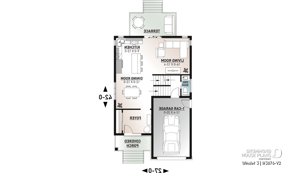 You will notice the rather narrow 27’ in width, including a garage, which makes it perfect for smaller lots. The space above the garage is used for the master bedroom, which also allowed the addition of a large walk in closet.