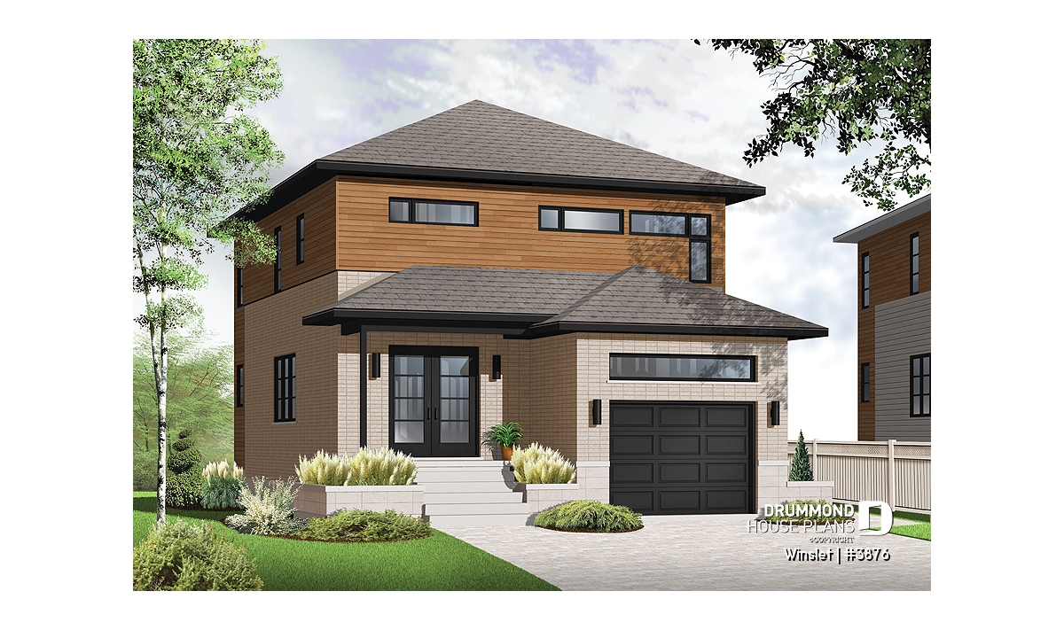Modern amenities for narrow lot Modern house plan, master suite, garage and more!