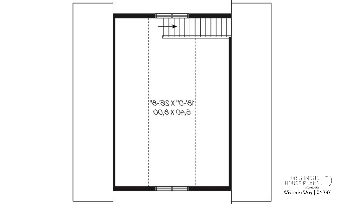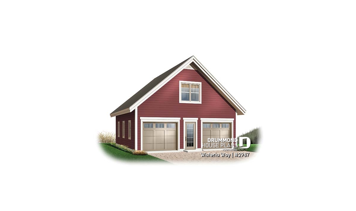 This pretty garage with bonus space is all about the symmetrical details. 28 feet wide and deep, but not at all boxy thanks to the balanced garage doors, central entrance and trio of windows on both sides. The upstairs includes 484 sq. ft. of bonus space, ideal for storage, a studio or the quintessential “man-cave”.