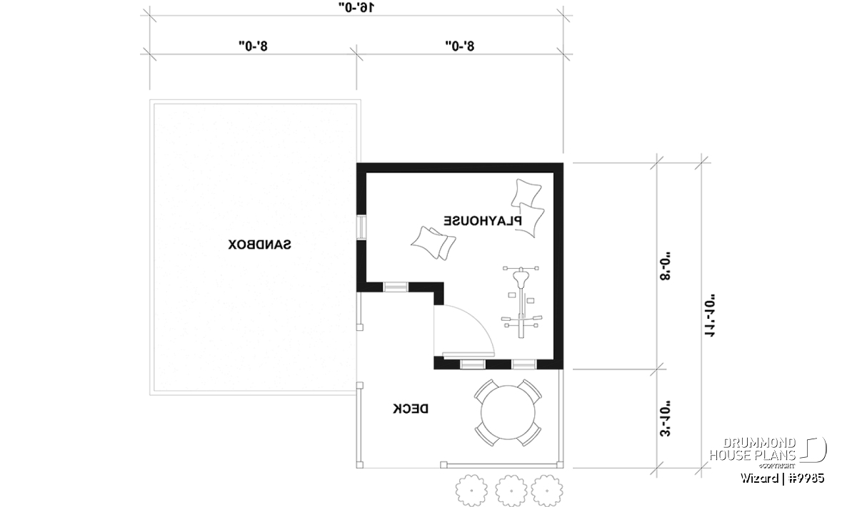 Small Playhouse Plan for Children – 8'-0" x 8'-0", porch not included.
