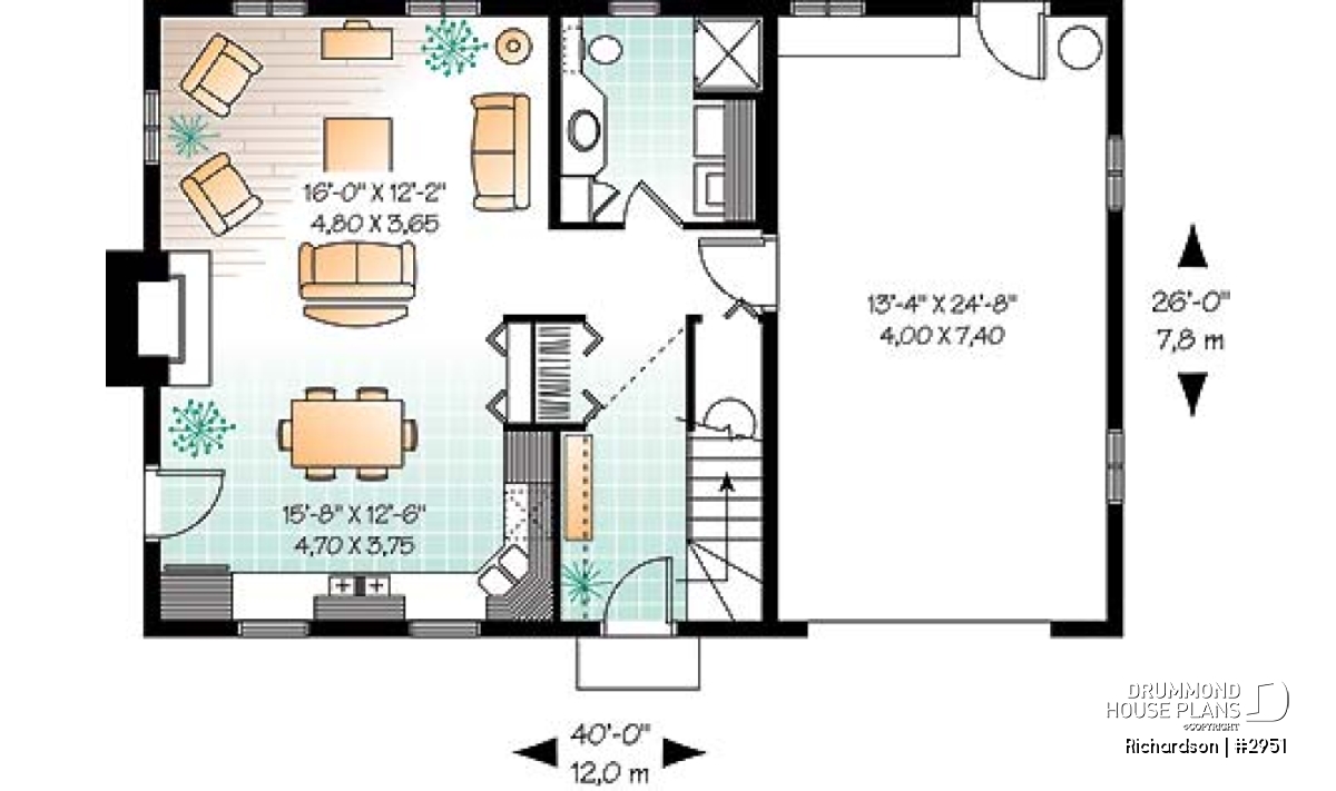 | Width | 40'0" | Depth | 26'0" |