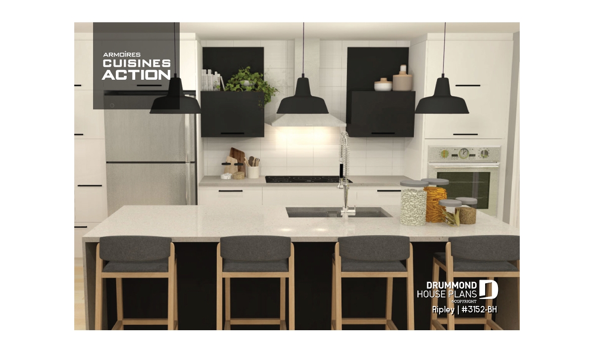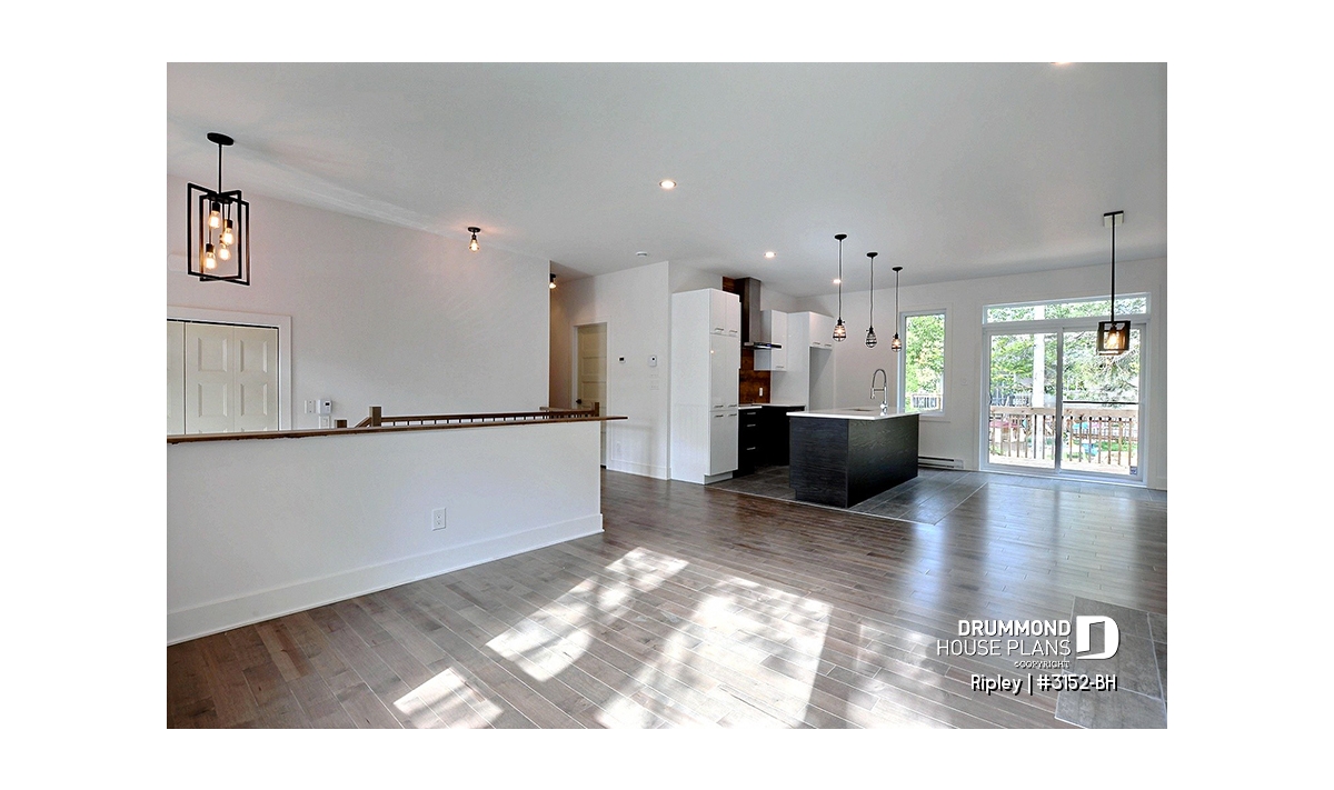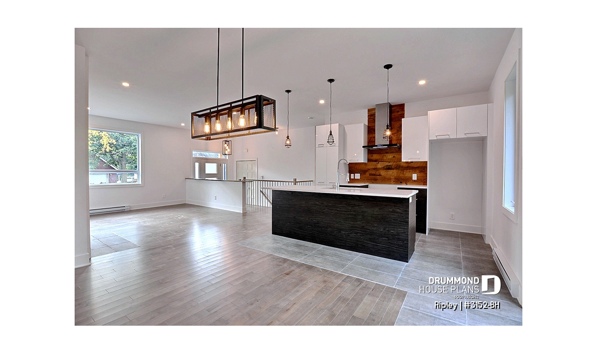 Open kitchen, dining and living floor plan concept.