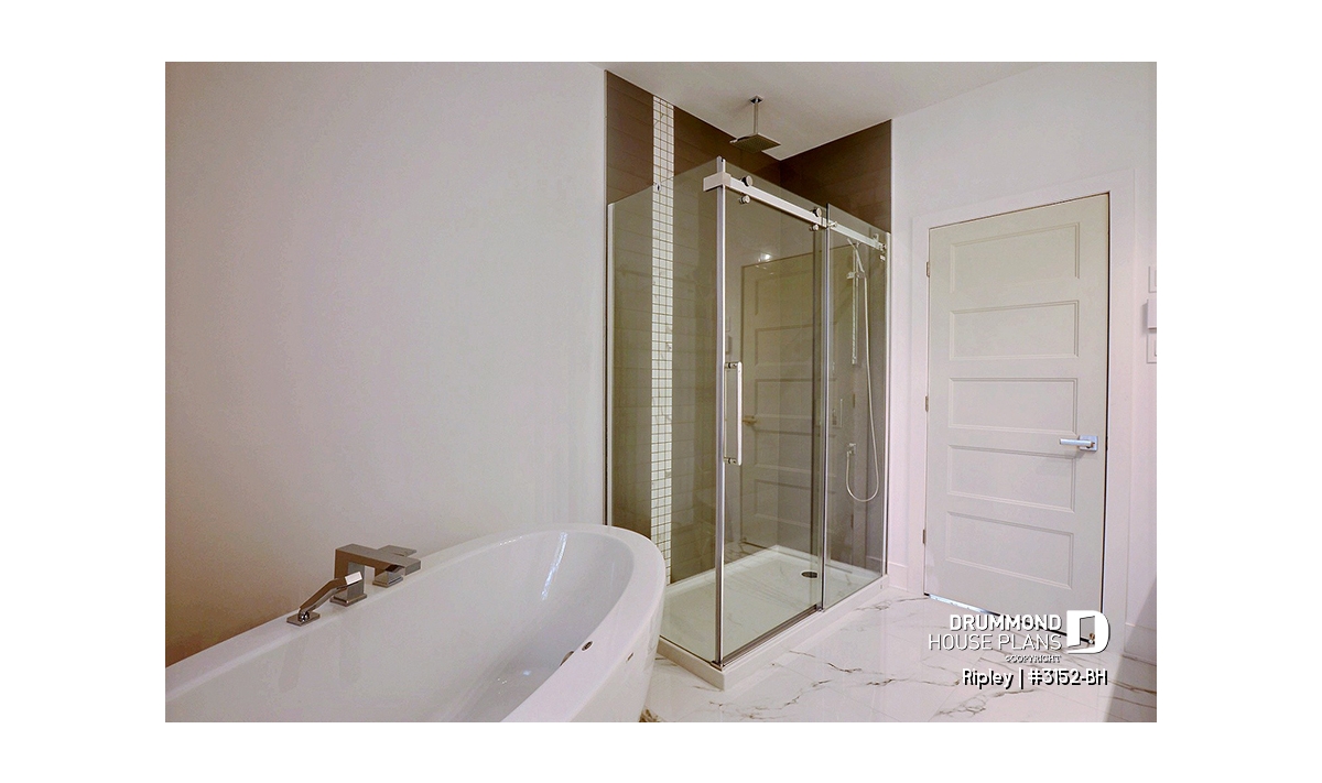 A large family bathroom offers a separated bath tub and x-large shower, and also a practical laundry area.