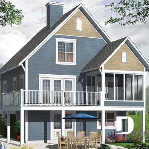 This quaint cottage would be perfectly at home on a sloping lot with water or hillside views.