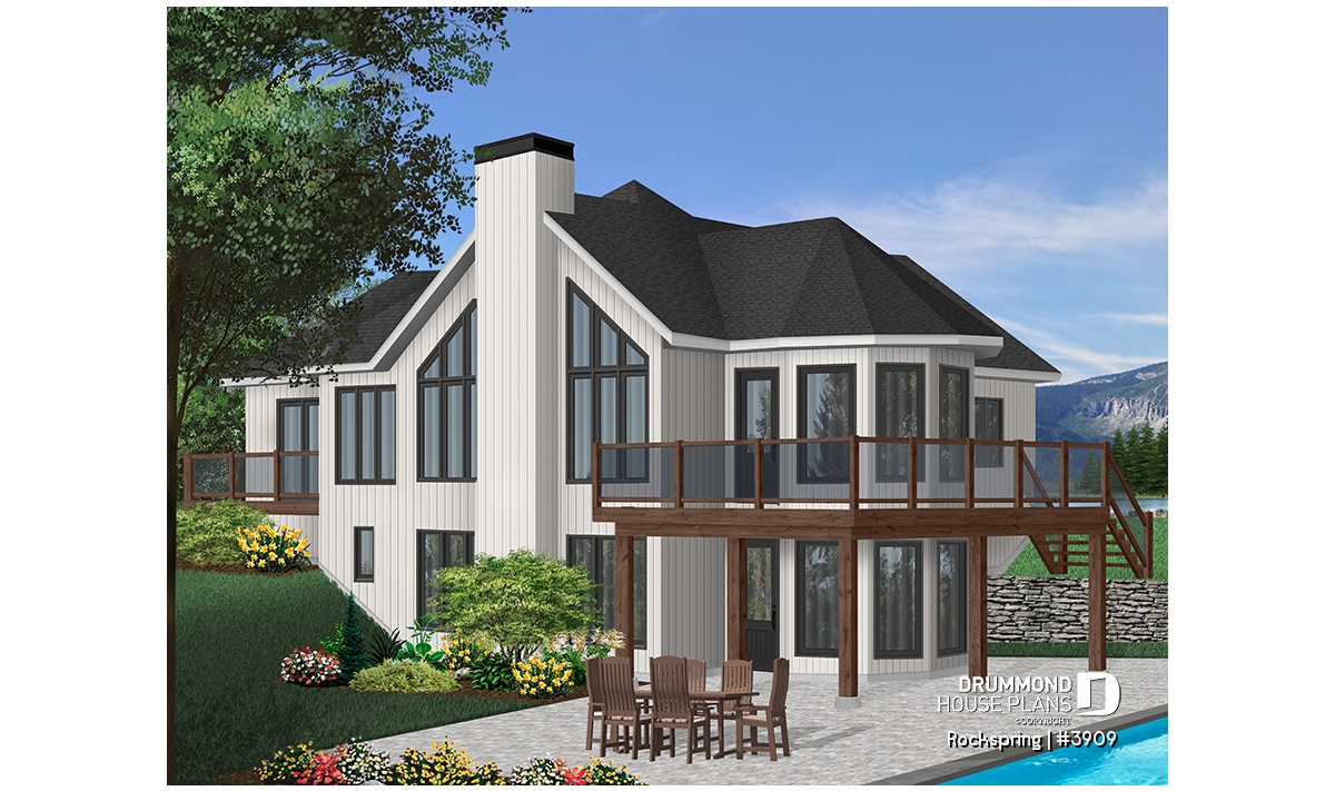 Rear view - BASE MODEL - Chalet house plan with 2 bedrooms, master bedroom with private balcony, lots of natural light - Rockspring