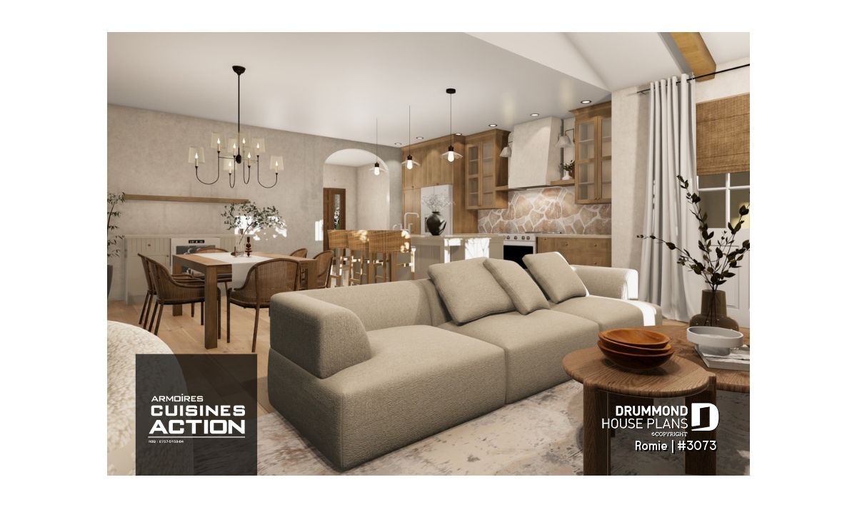 Open concept to the kitchen, dining room and living room.