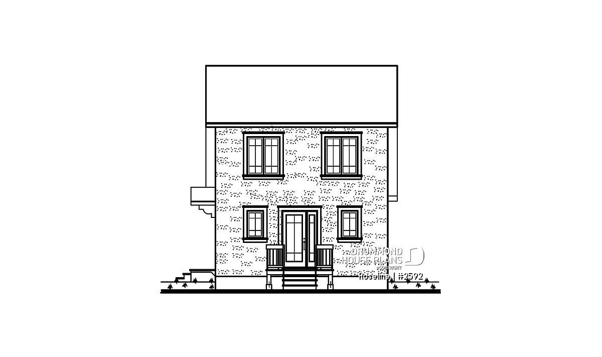 Abundant fenestration, covered front porch, covered service entrance.