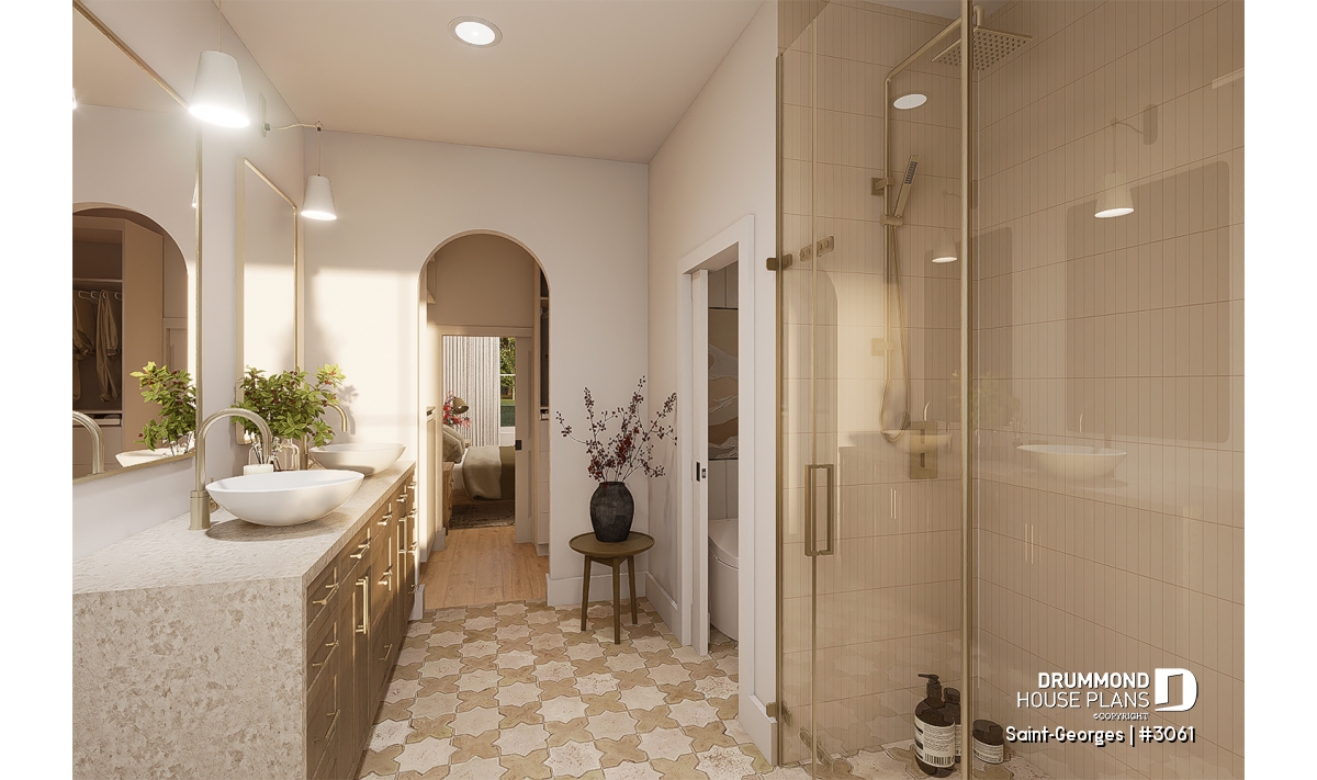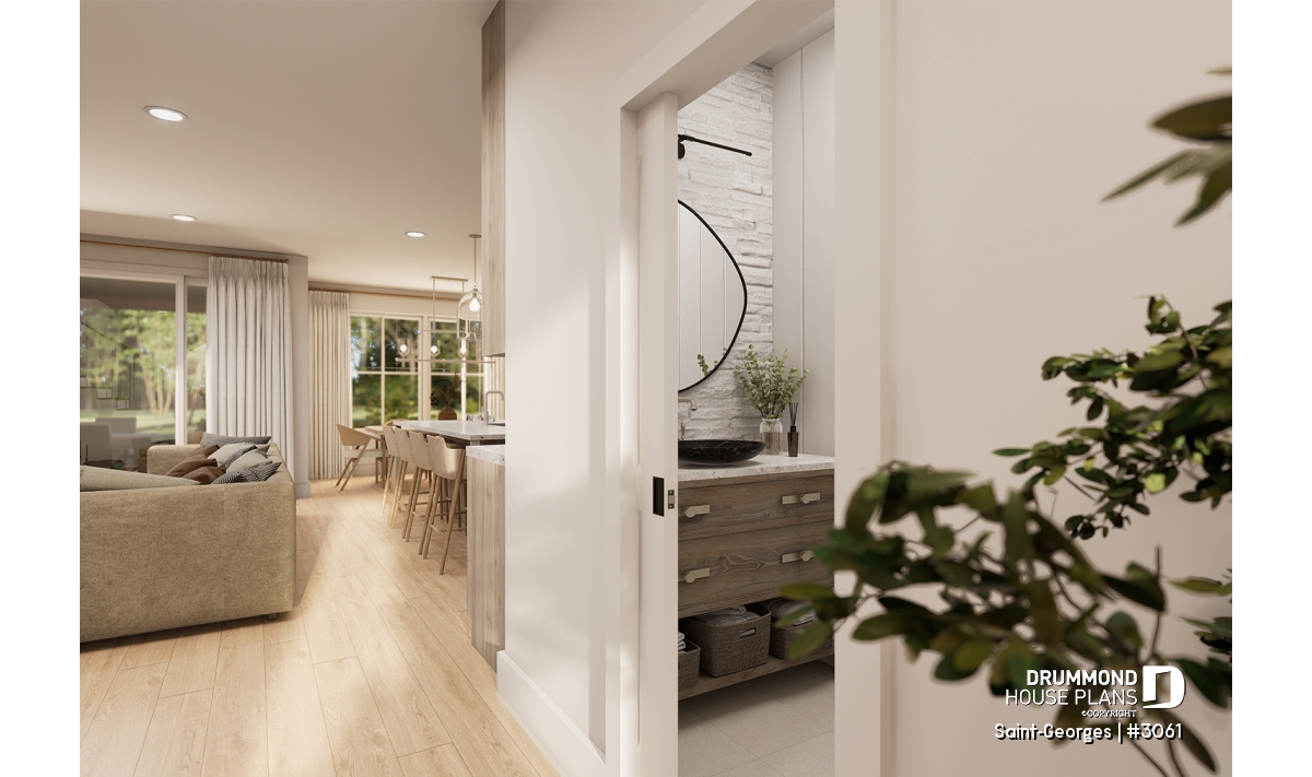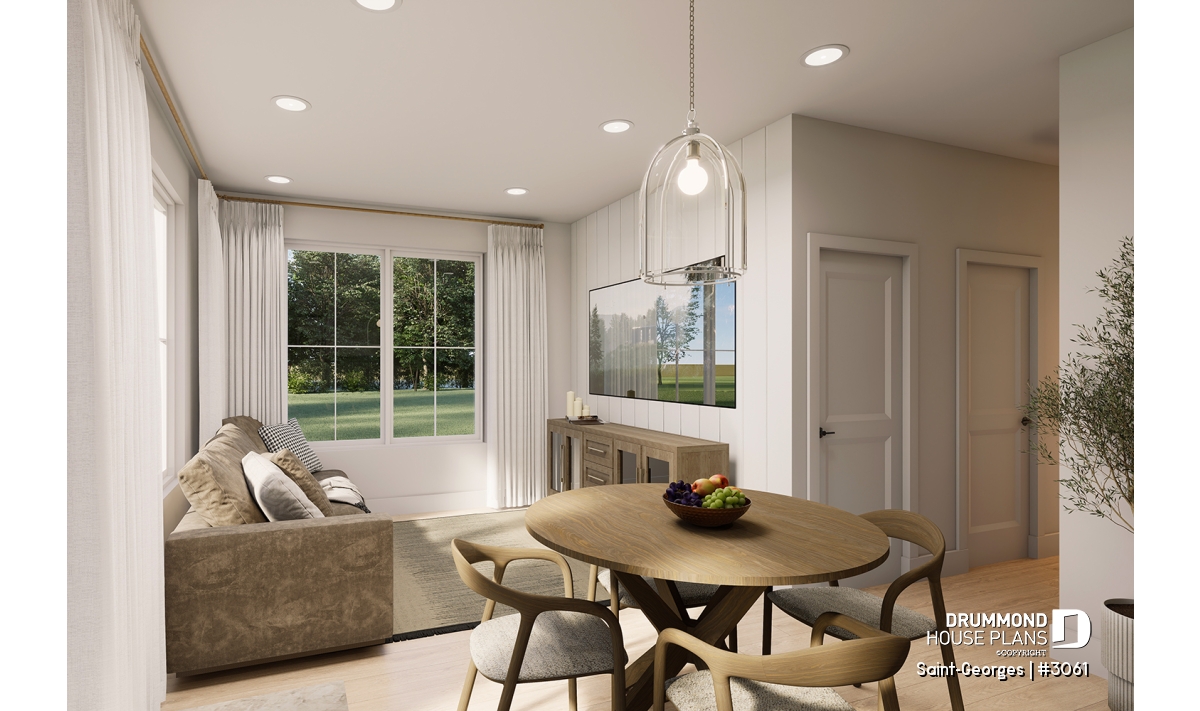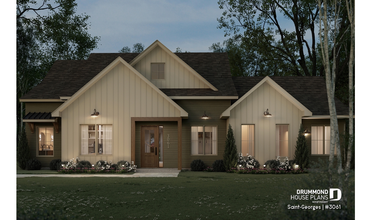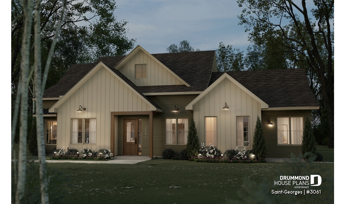 The SAINT-GEORGES house plan (#3061) is a beautifully designed intergenerational farmhouse-style home, offering 2,925 sq. ft. of living space spread over two levels. Thoughtfully created for families who wish to bring generations together under one roof, this home strikes the perfect balance between comfort, privacy, and timeless charm.