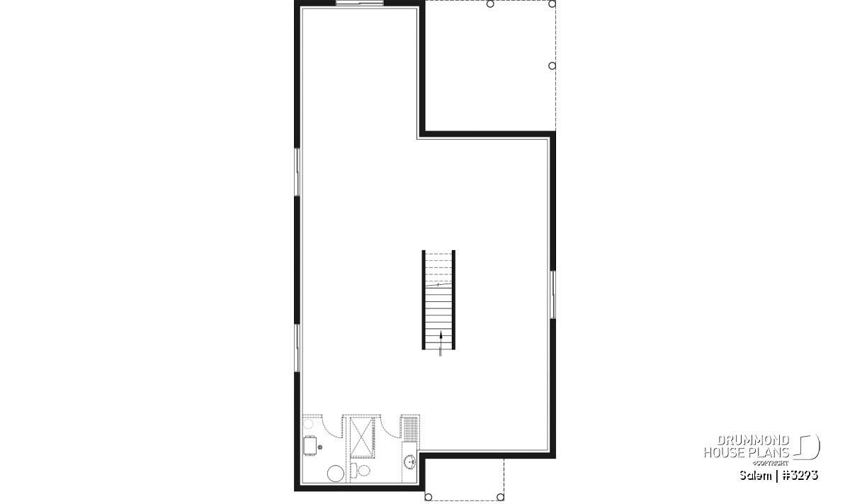 Basement - House plan for narrow lot, covered rear balcony, master suite + 2 secondary bedrooms with full bath, cathedral - Salem