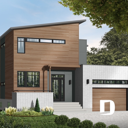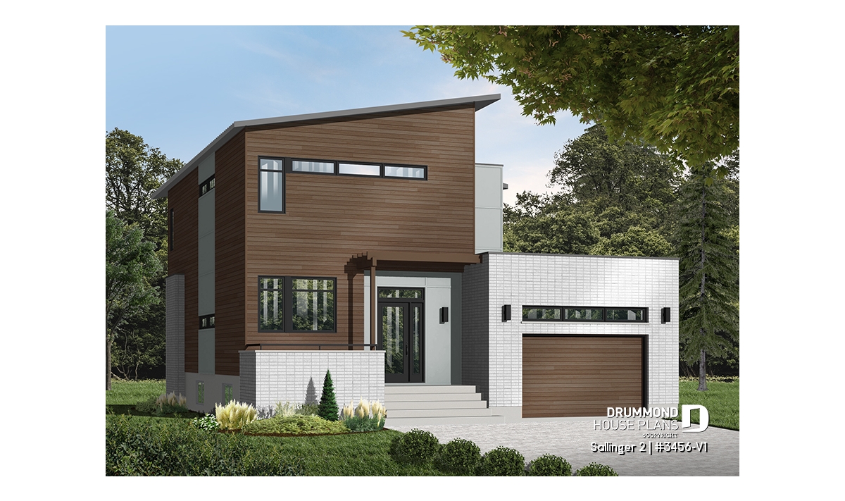 A mere 36-foot wide footprint makes this modern contemporary an excellent choice for a narrow lot. Modern lines, windows and exterior materials are sure to be admired by all.