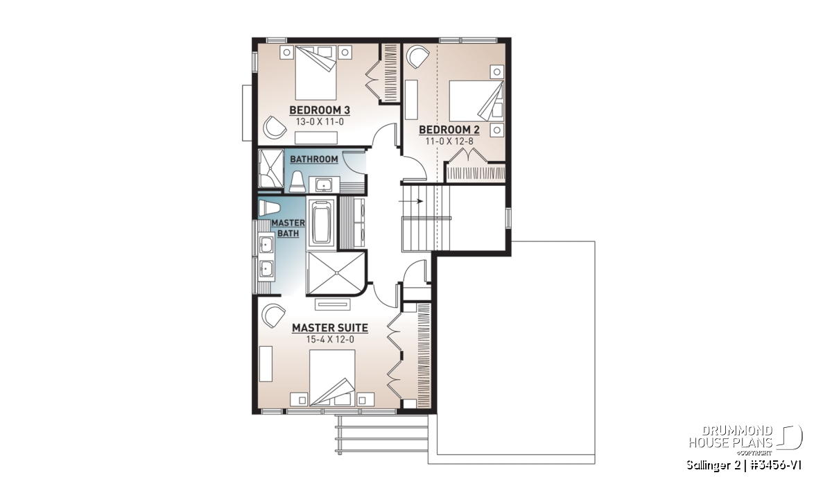 2nd level - Striking 3 bedroom contemporary house plan with home office, open floor plan with fireplace and garage - Sallinger 2