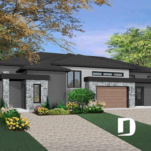 Discover our new duplex home design for large family, one of the units offering a garage, and with a possibility of 4 to 5 bedrooms per unit, as well as two living rooms per unit, or a study and a game room, organize the space to suit your needs!