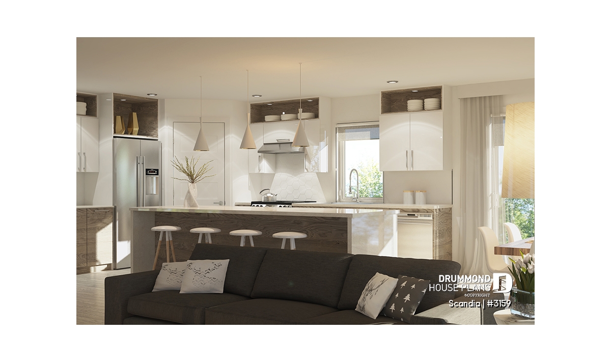 Scandi (plan # 3159) is a superb Scandinavian-inspired modern house plan of 1,400 square feet on the ground floor.