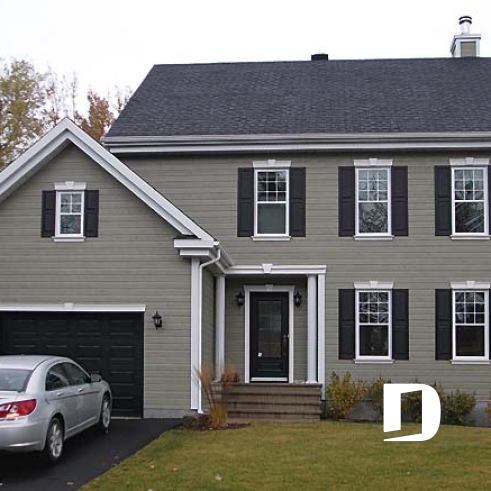 Symmetrical shuttered windows and impeccable trimwork result in a tidy house with formal charm.