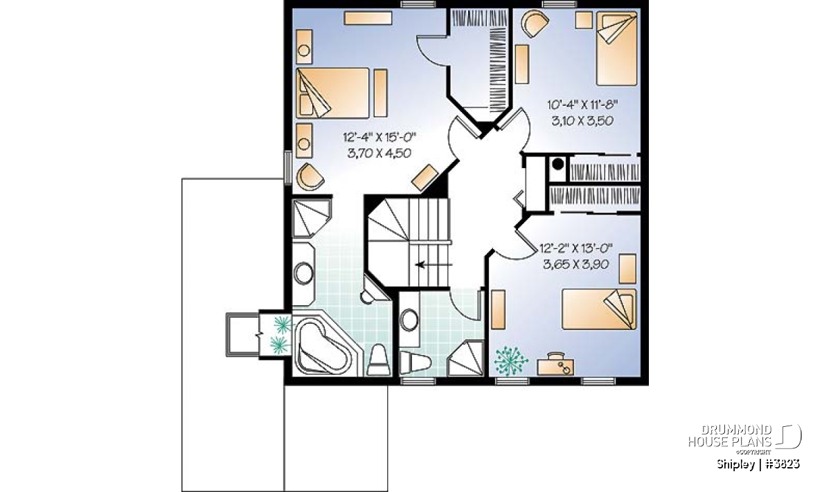 Upstairs, we find a lovely master retreat with walk-in closet and master bathroom with standalone shower plus a spa tube. Two additional bedrooms share a bathroom.