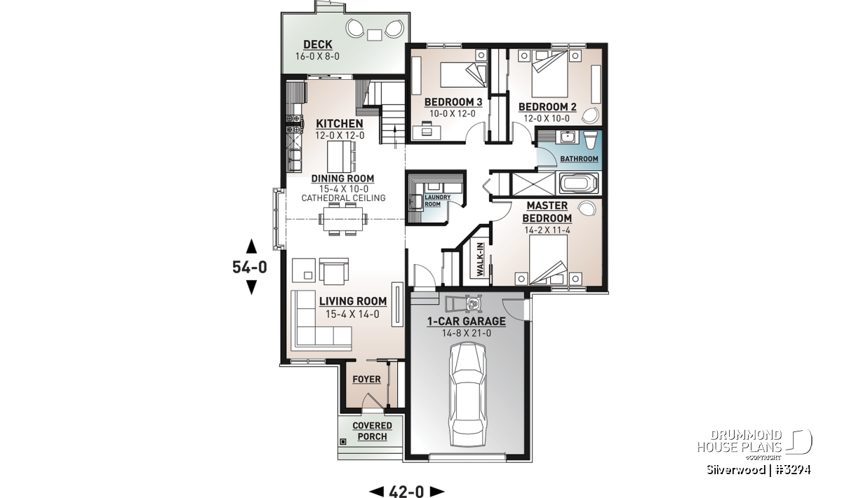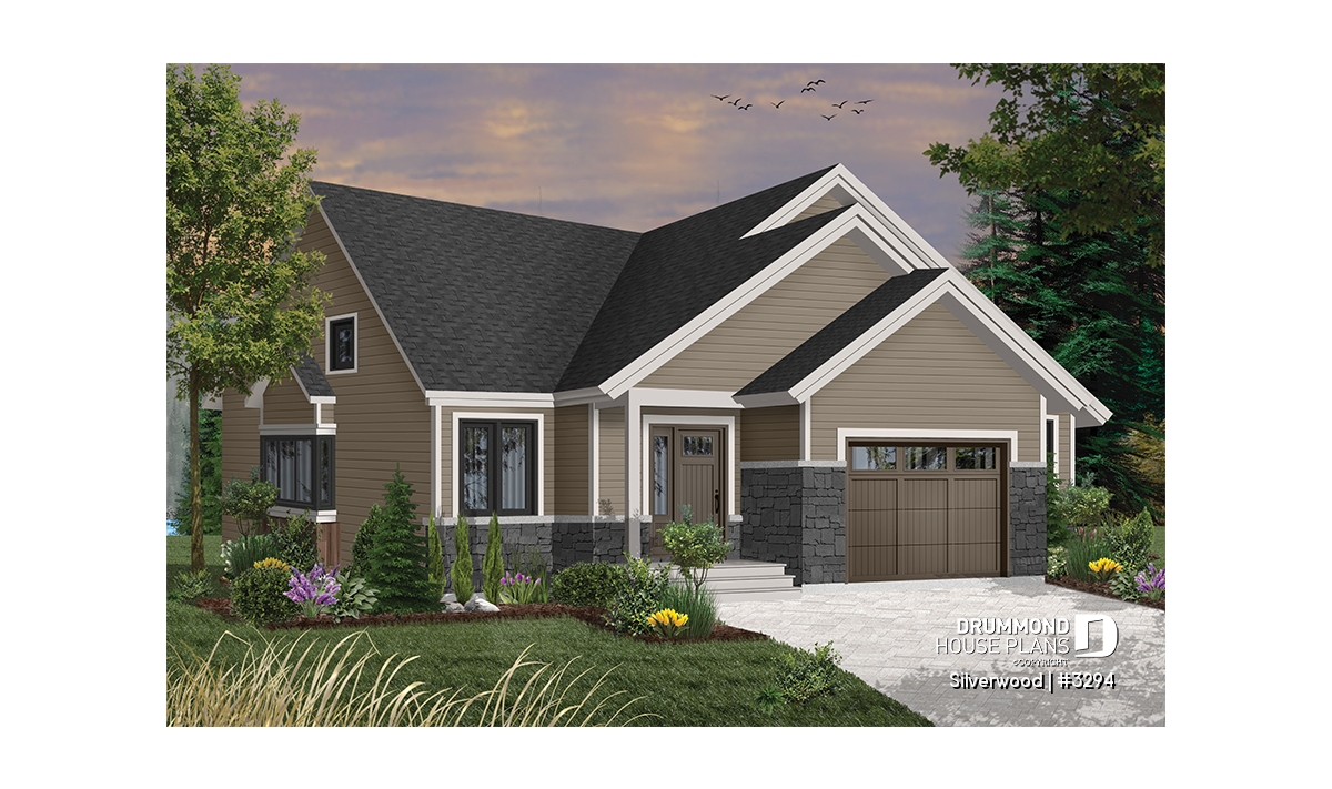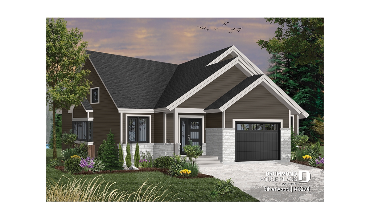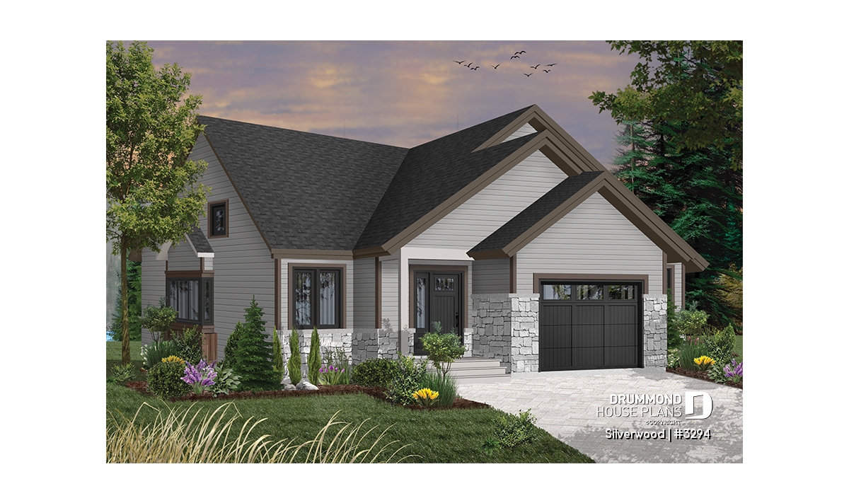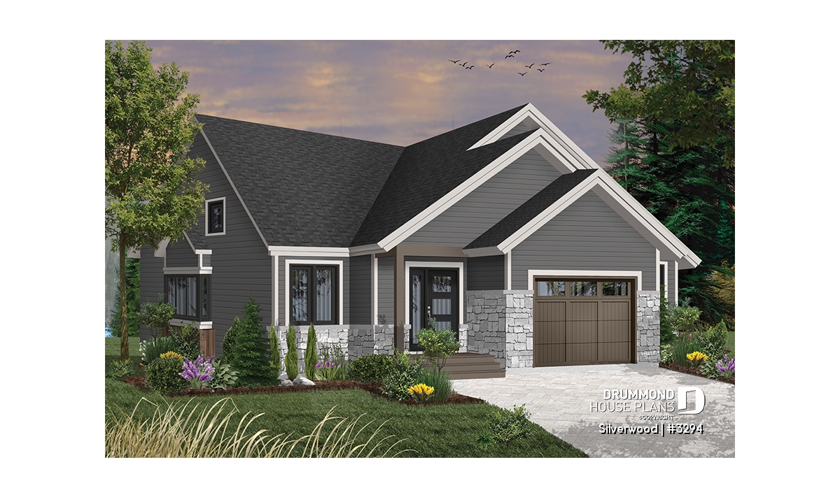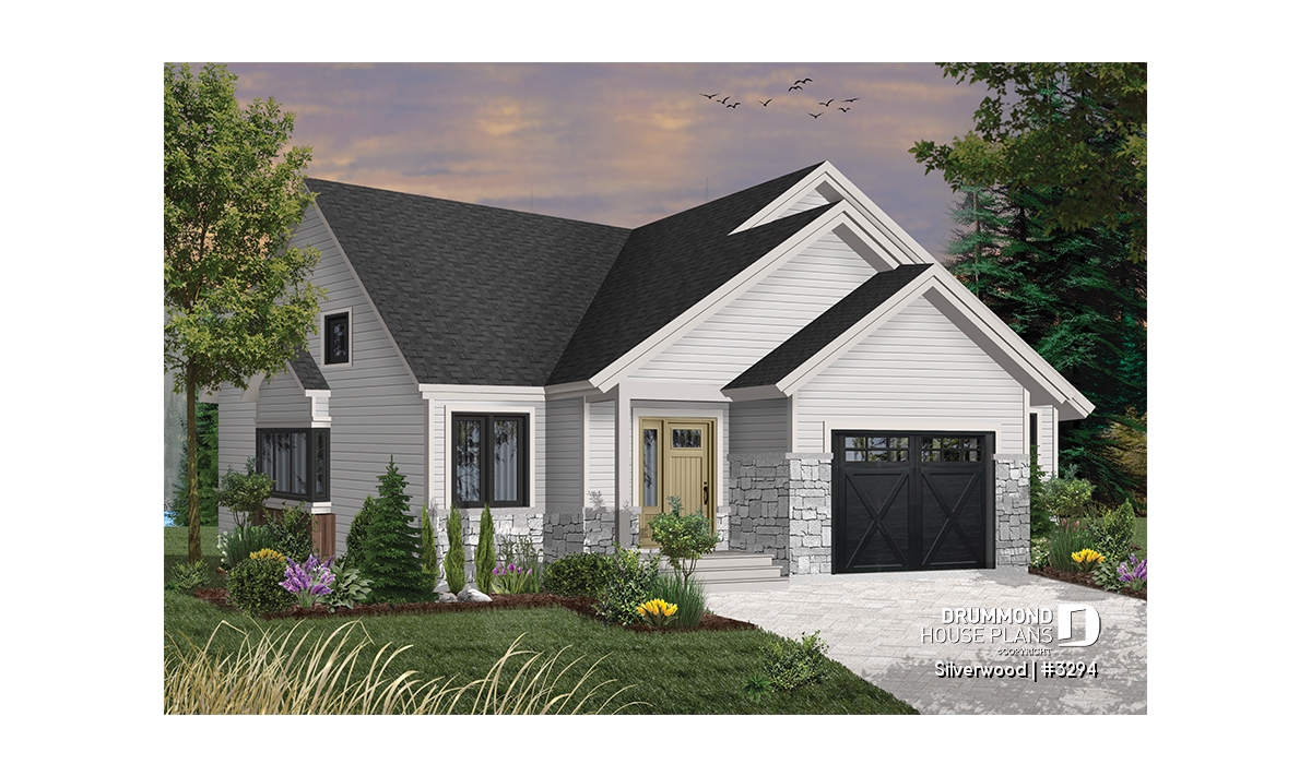 We are happy to present this new addition, single story, 3 bedroom house plan with garage. It is Drummond House Plan’s plan number 3294 that we have also called Silverwood, and suggests a practical floor arrangement with bedrooms and central living area all on one level.