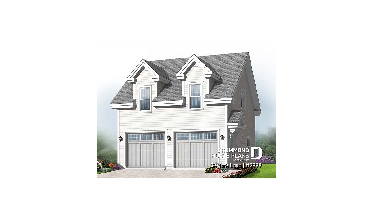 Few garages have the curb appeal of this gem. Perfect balance is achieved with dormers centred over respective garage doors. Easily able to accommodate two vehicles and with 728 sq. ft. of bonus space above, this charming garage awaits your ideas for adding an apartment, work studio or getaway space!