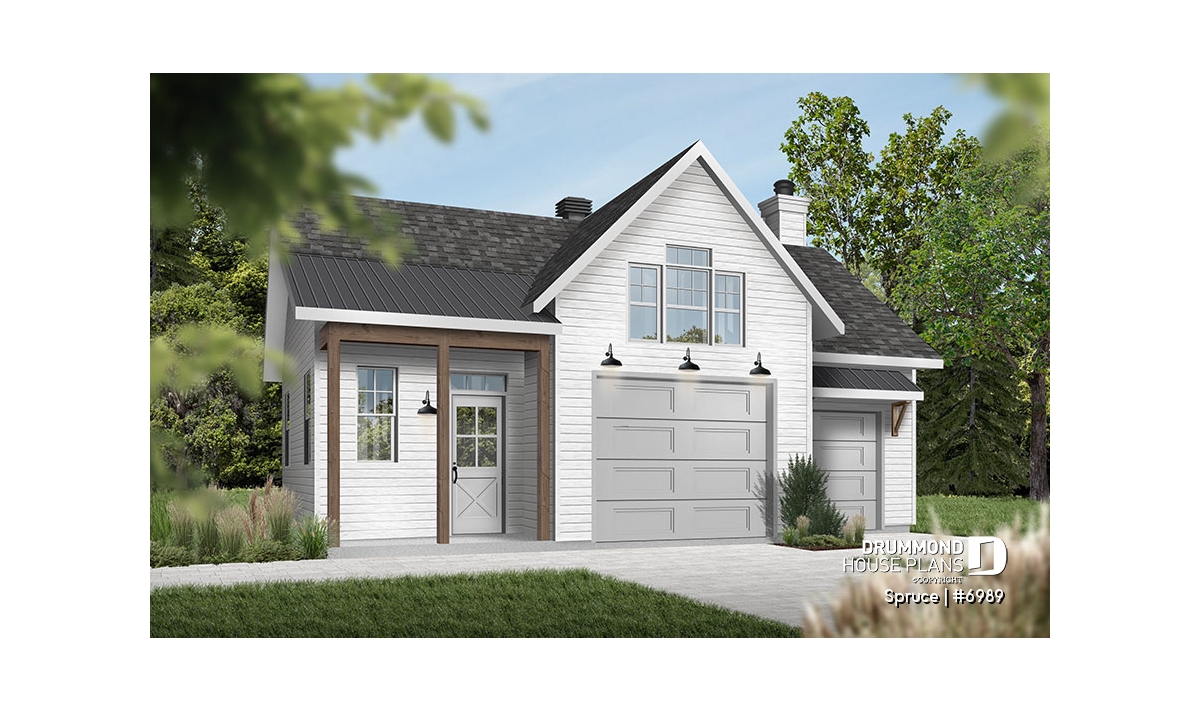 Blending charm, practicality, and efficiency, this country-inspired garage plan offers the flexibility today’s homeowners need: vehicle and RV storage, workshop functionality, gardening space, and abundant loft storage—all housed within a timeless, warmly appealing design.