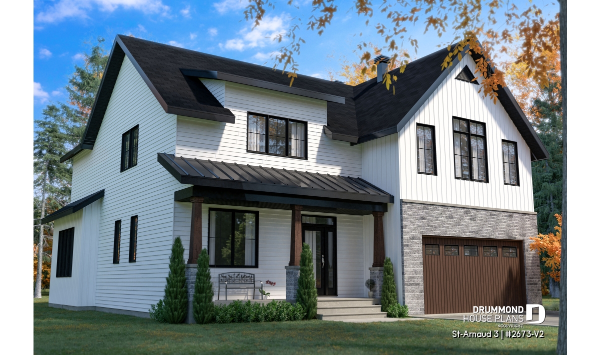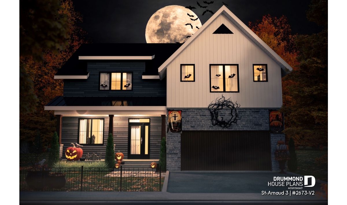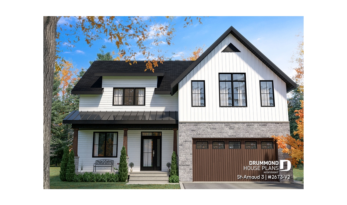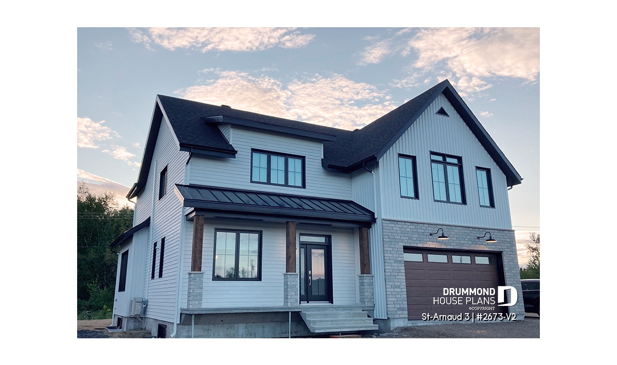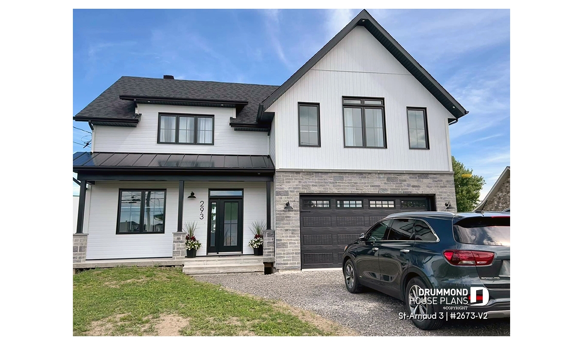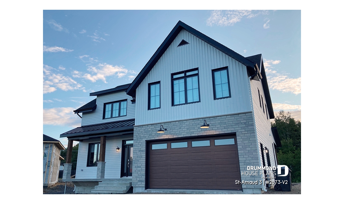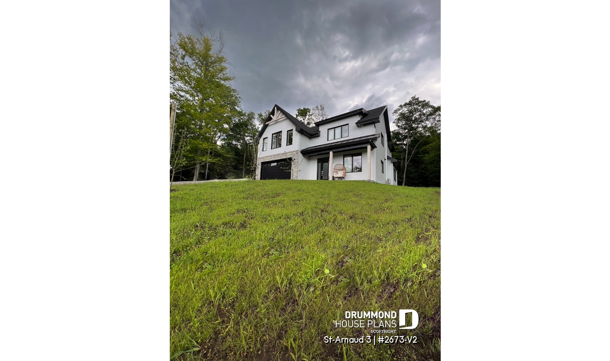 The open mezzanine overlooking the family room enhances the volume and brightness of the space. A double garage provides direct, convenient access to the home. Finally, an unfinished basement and several foundation options allow you to adapt this plan to your lifestyle and your lot.