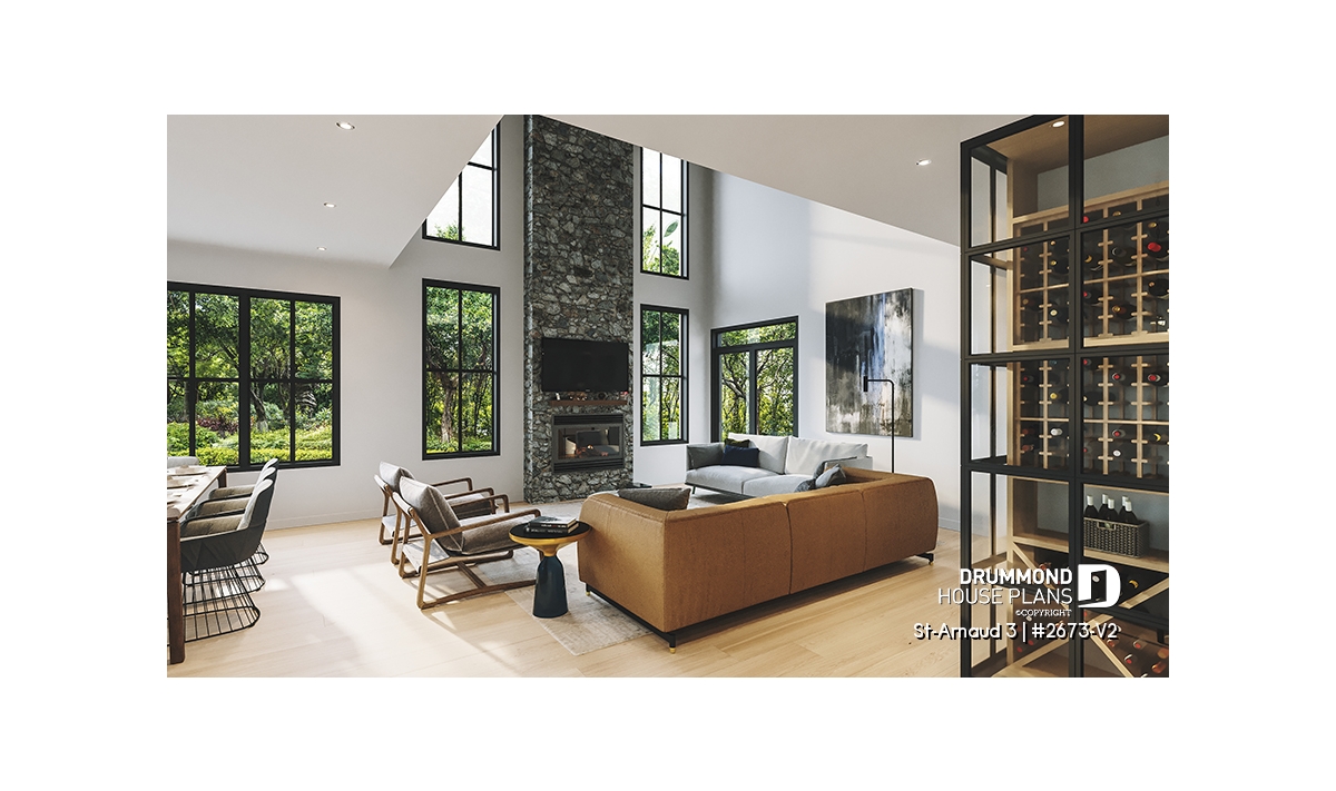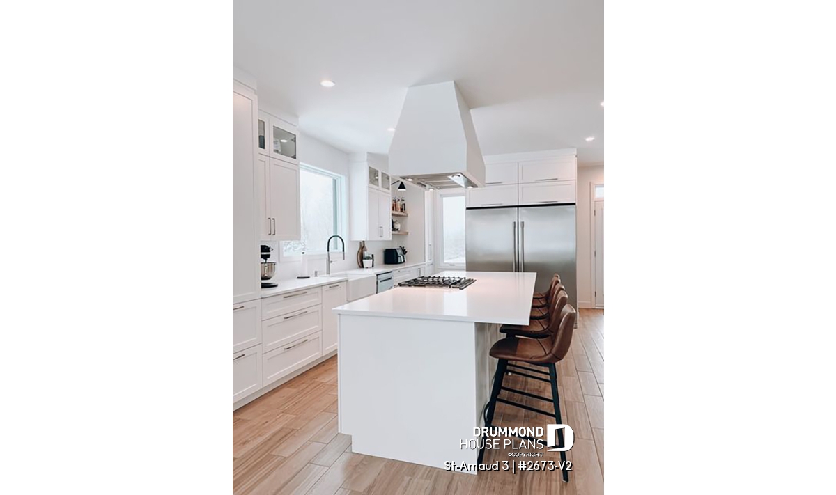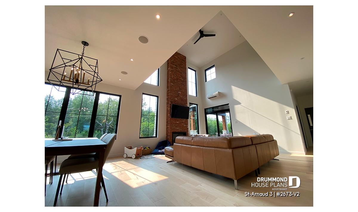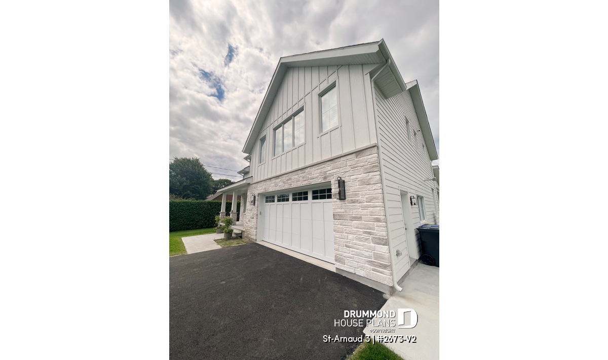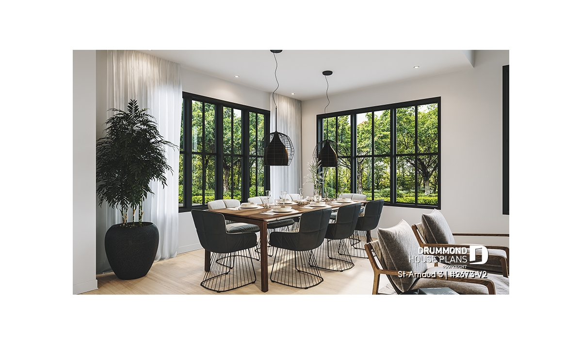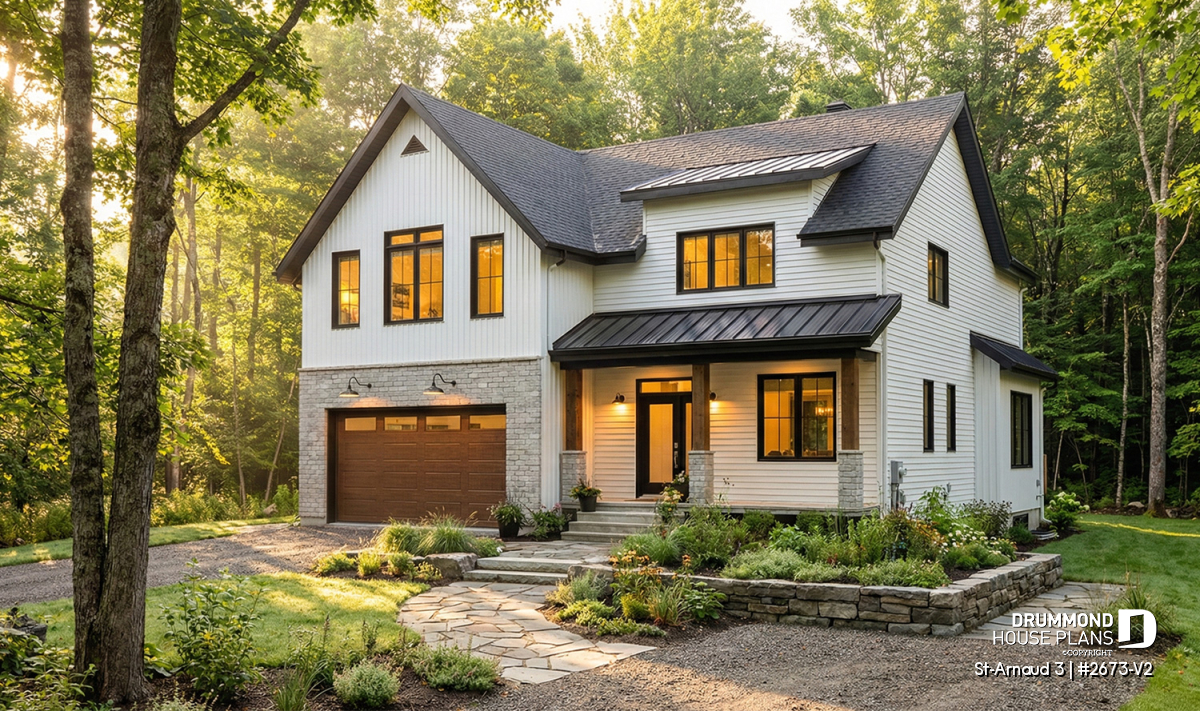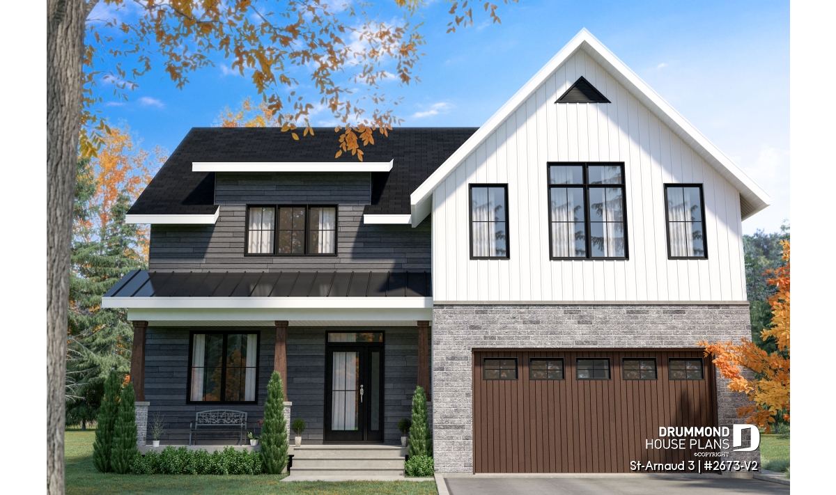 The open mezzanine overlooking the family room enhances the volume and brightness of the space. A double garage provides direct, convenient access to the home. Finally, an unfinished basement and several foundation options allow you to adapt this plan to your lifestyle and your lot.