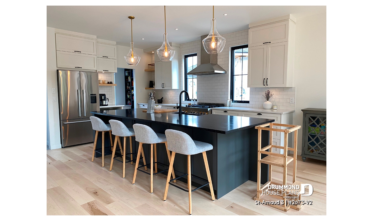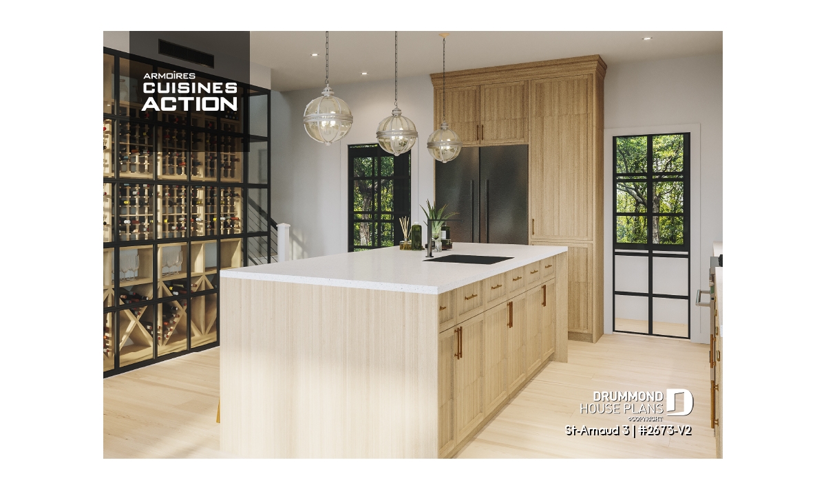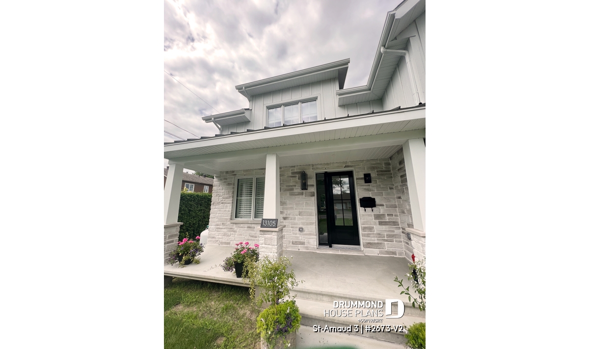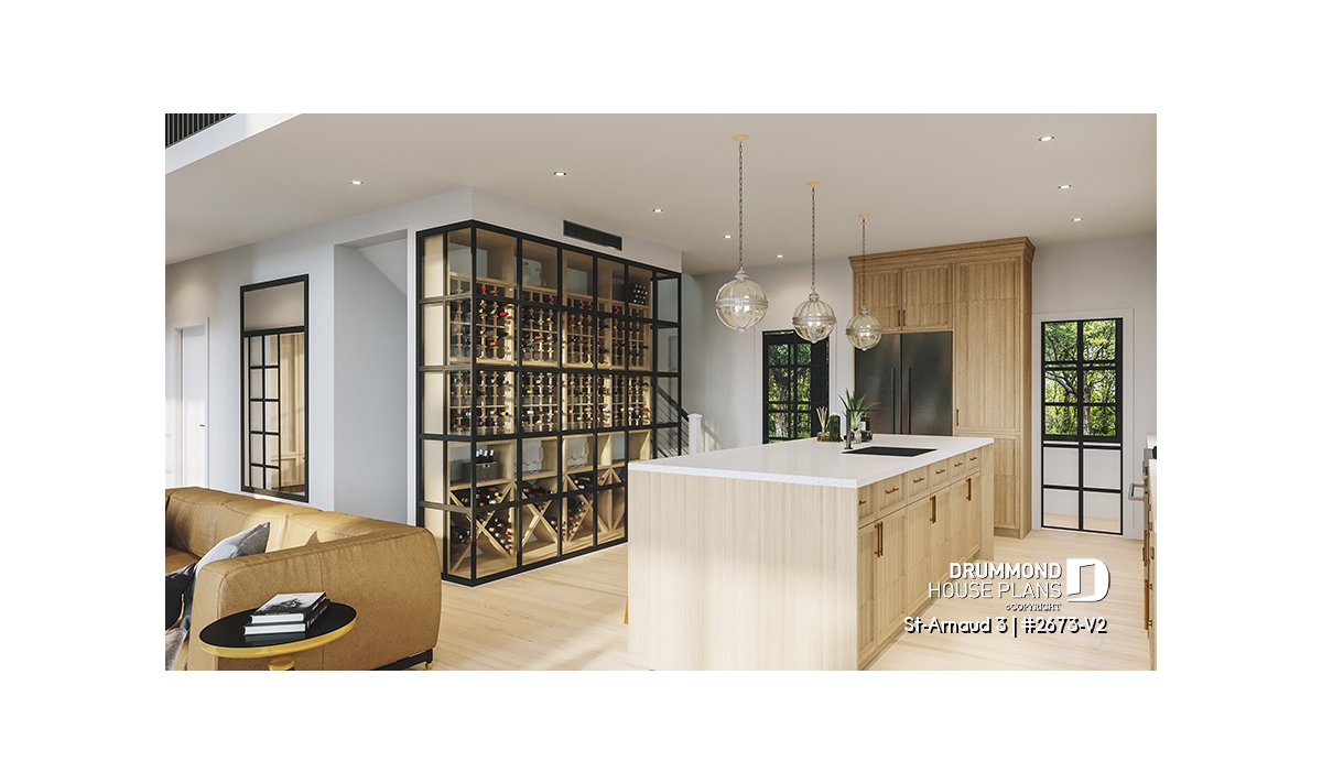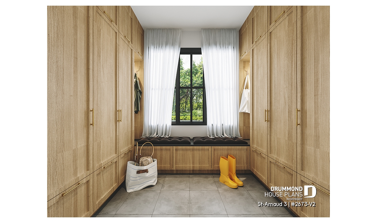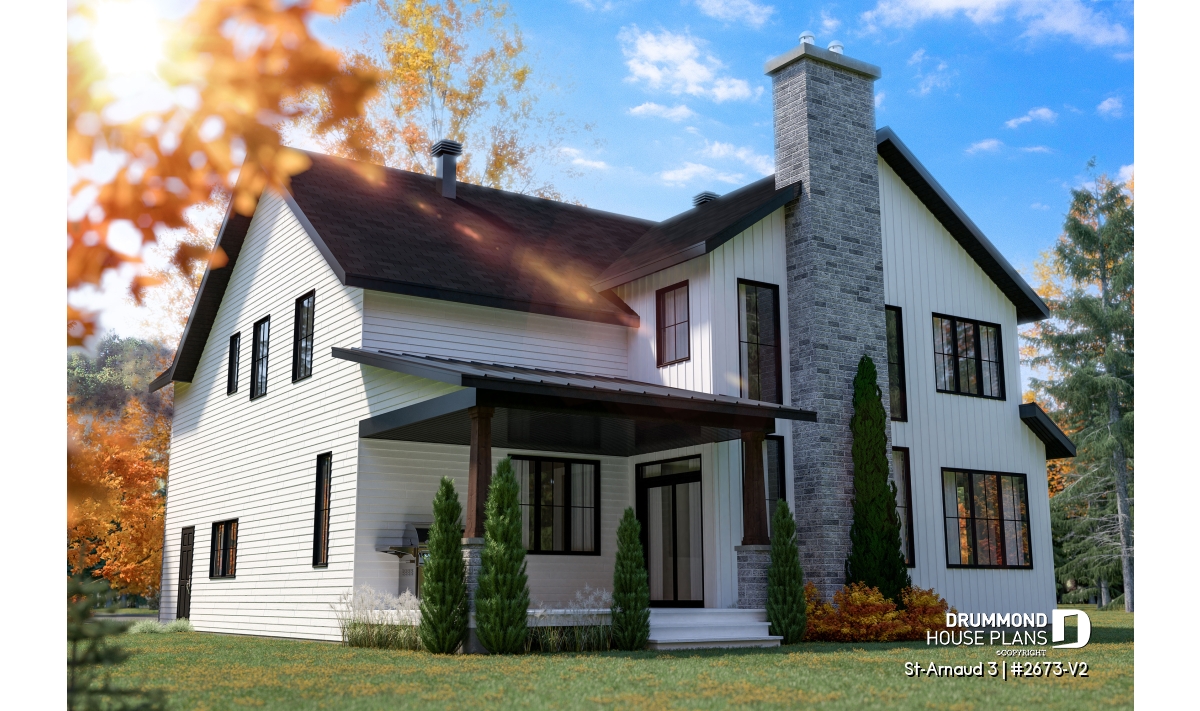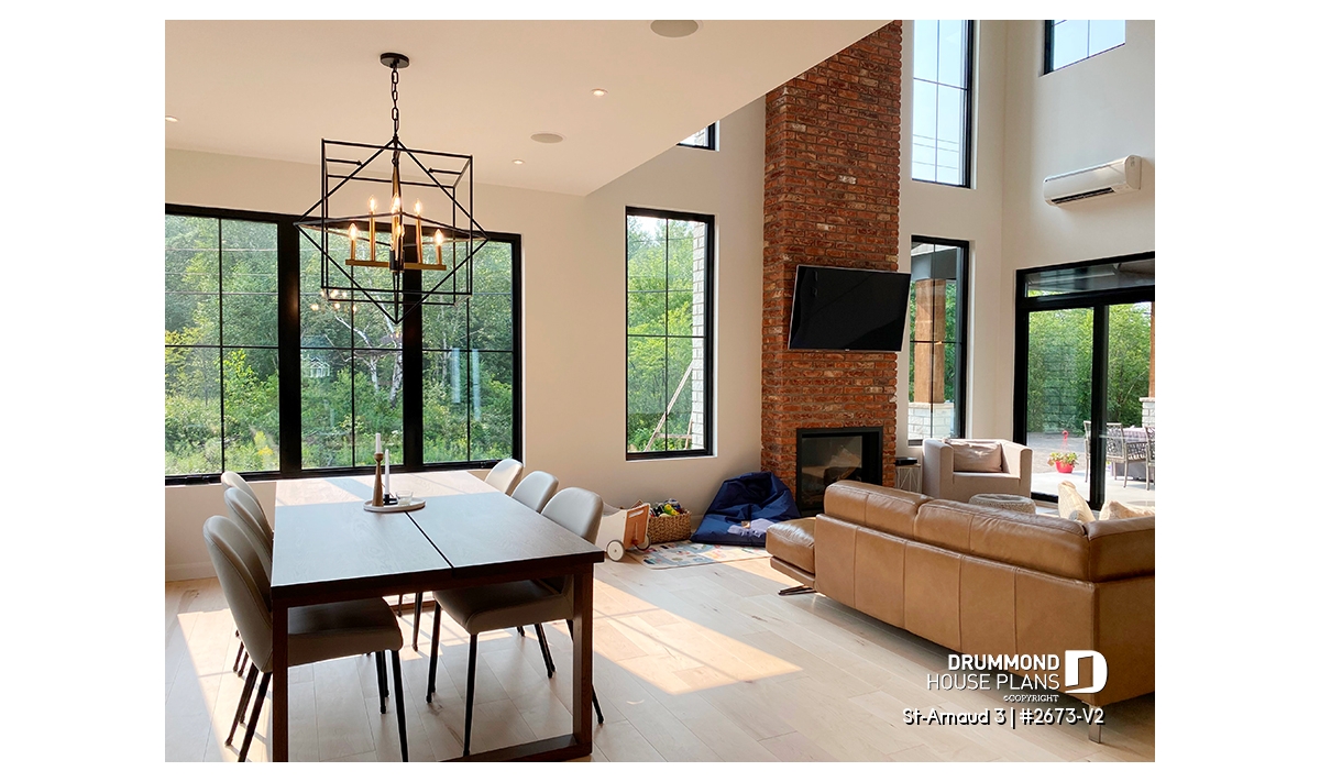 The open mezzanine overlooking the family room enhances the volume and brightness of the space. A double garage provides direct, convenient access to the home. Finally, an unfinished basement and several foundation options allow you to adapt this plan to your lifestyle and your lot.