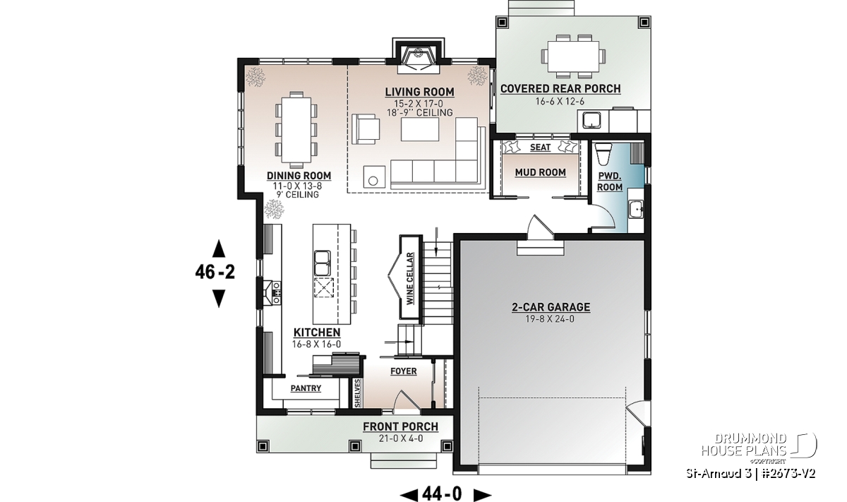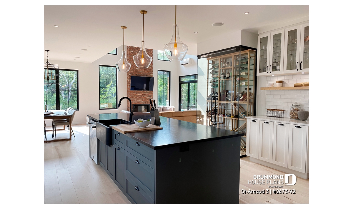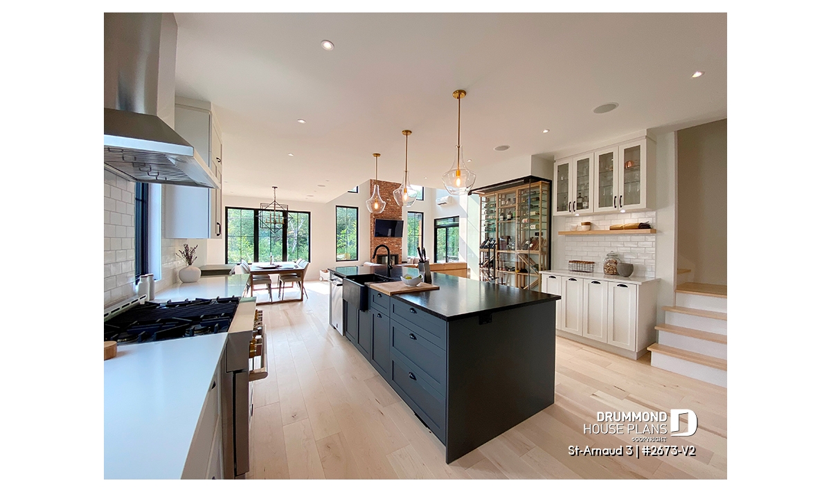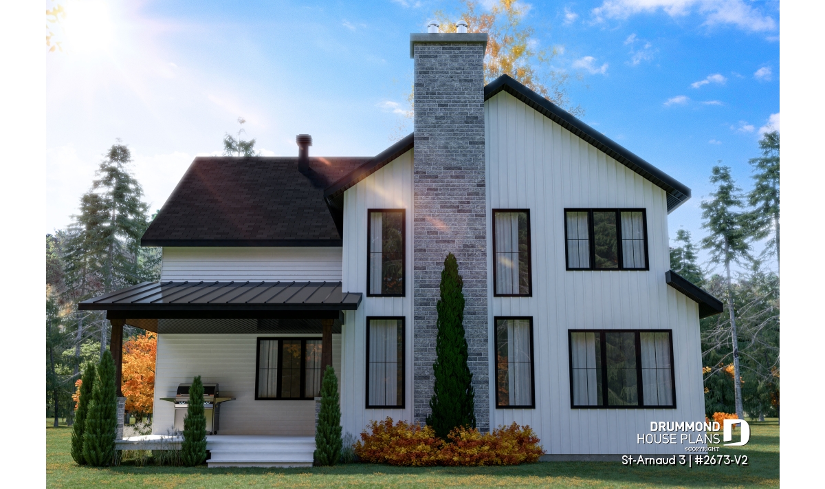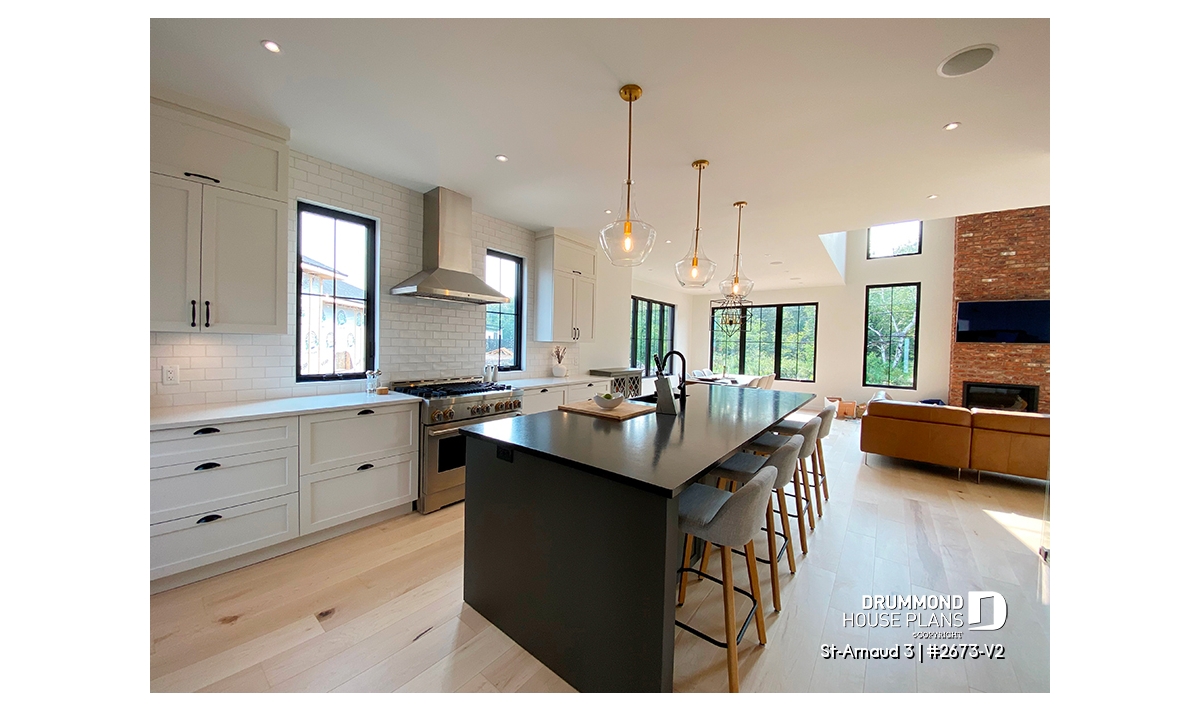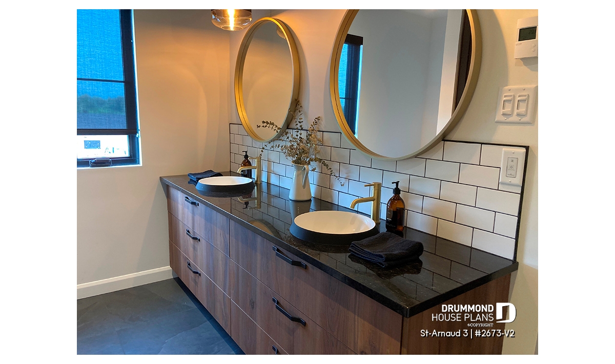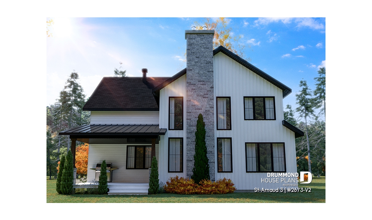 The open mezzanine overlooking the family room enhances the volume and brightness of the space. A double garage provides direct, convenient access to the home. Finally, an unfinished basement and several foundation options allow you to adapt this plan to your lifestyle and your lot.