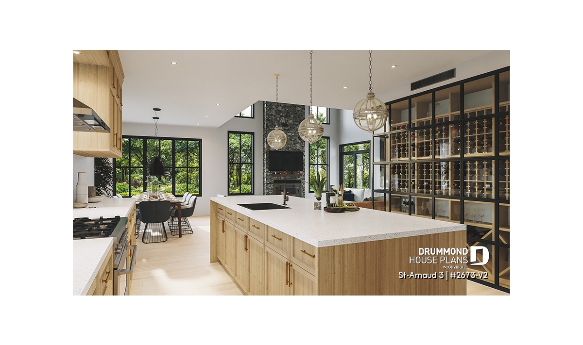 Mud room, Pantry, Island, Panoramic view, Fireplace, Mezzanine, Cathedral ceiling, Second floor laundry room, Master suite upstairs, Walk-in master bed., Covered patios, Wine cellar, Double sinks