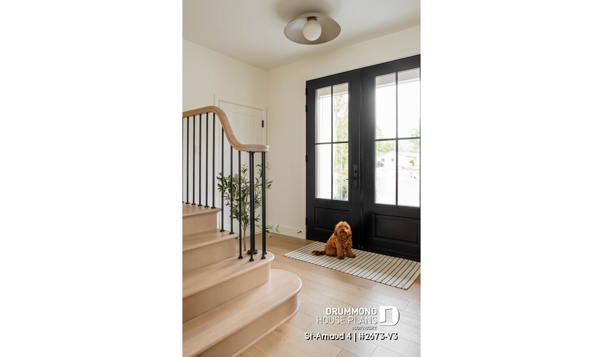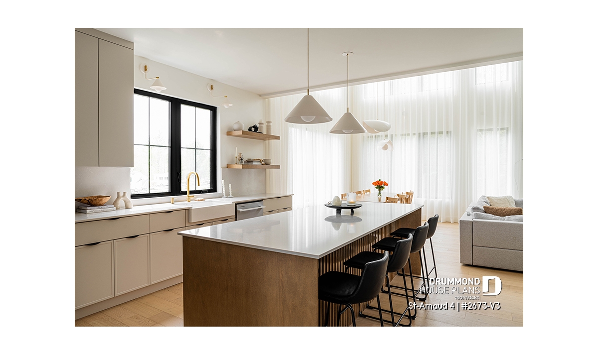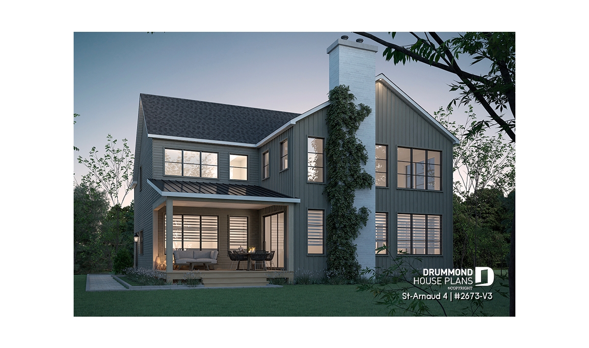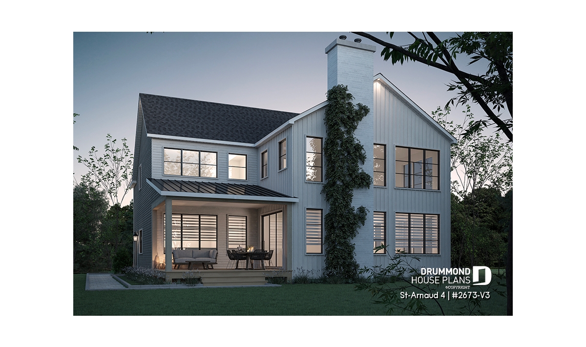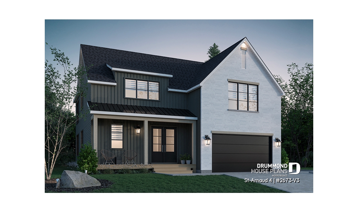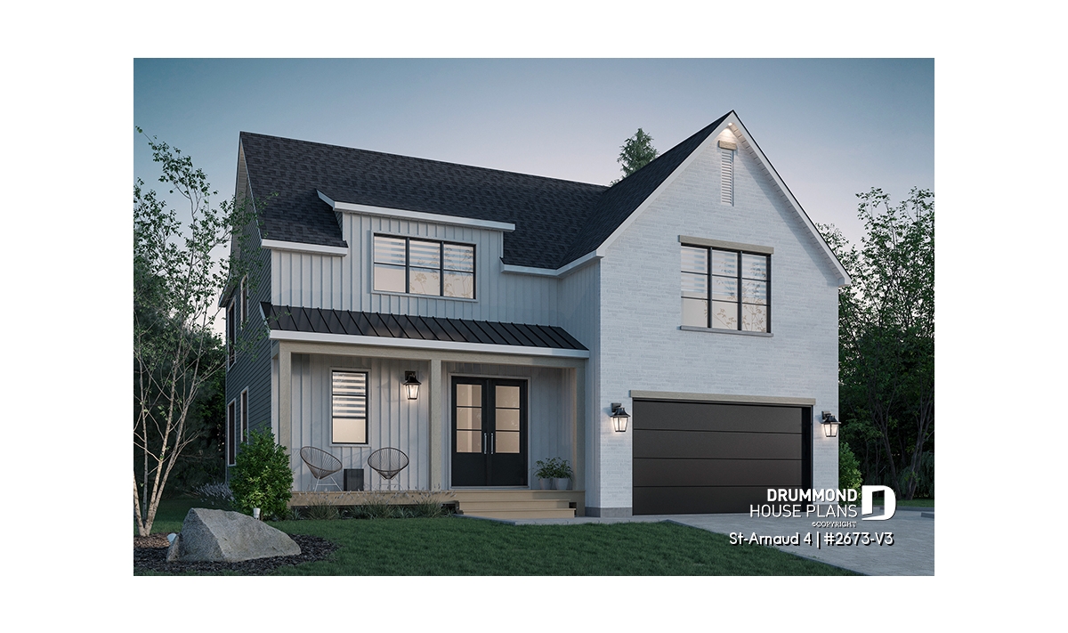 House plan ST-ARNAUD 4 (#2673-V3) is the 4th and smaller version of an already popular collection here at Drummond House Plans! With all the conveniences of its previous Farmhouse versions, the St-Arnaud 4 offers a more refined Scandinavian-inspired look.