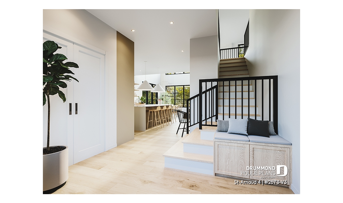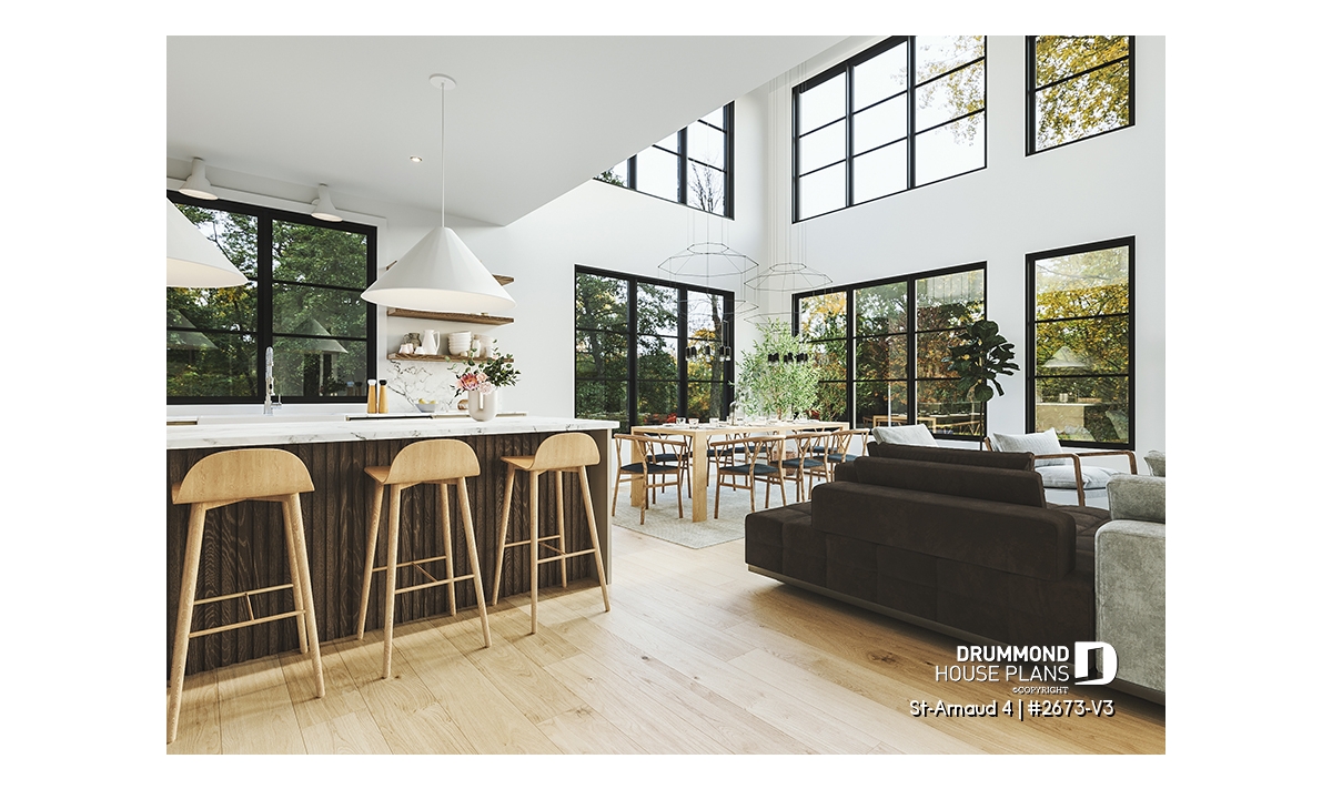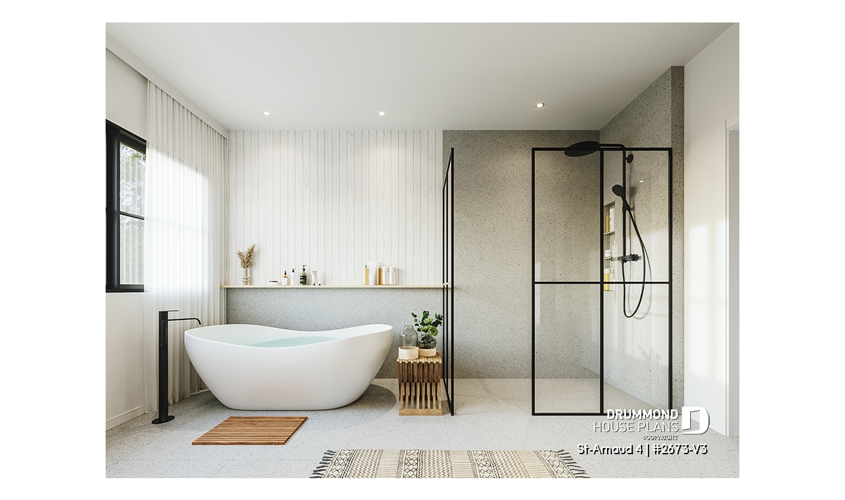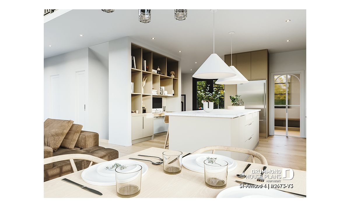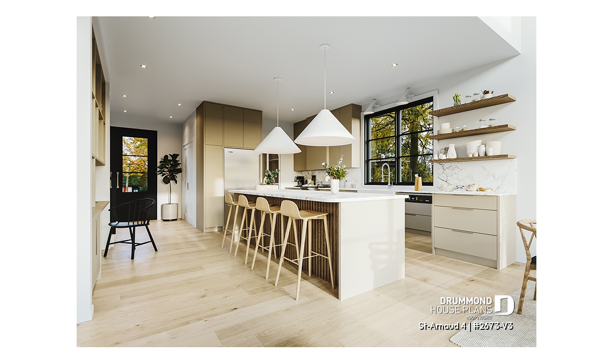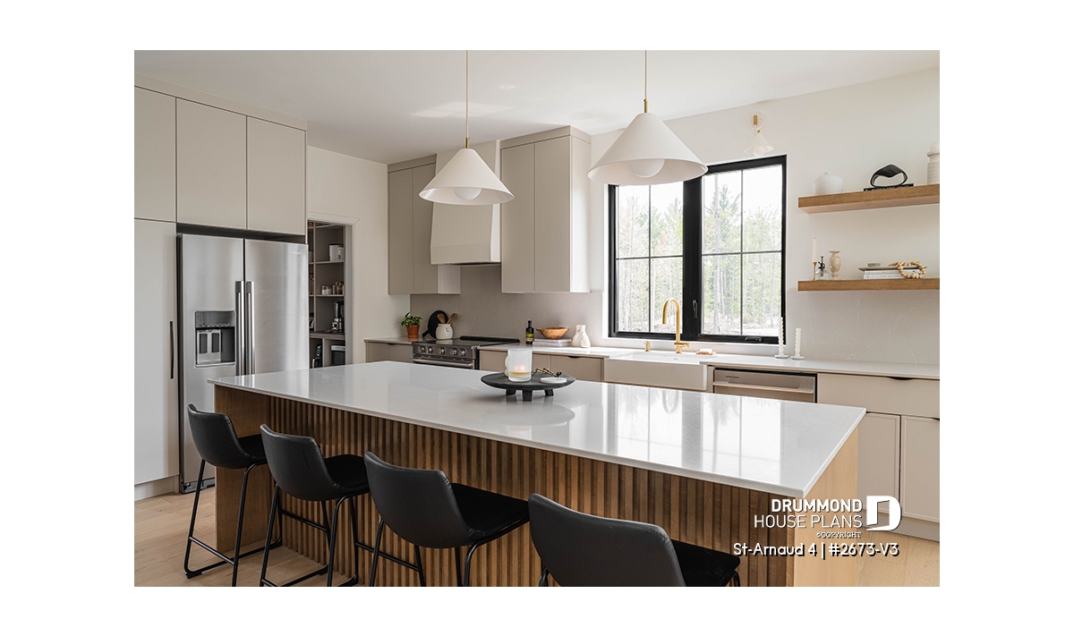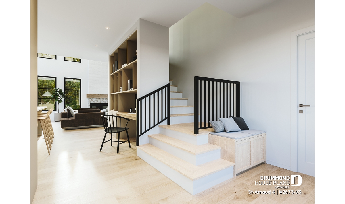 House plan ST-ARNAUD 4 (#2673-V3) is the 4th and smaller version of an already popular collection here at Drummond House Plans! With all the conveniences of its previous Farmhouse versions, the St-Arnaud 4 offers a more refined Scandinavian-inspired look.
