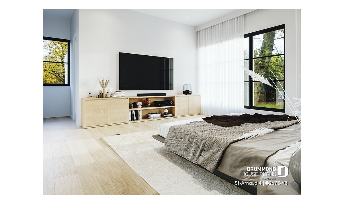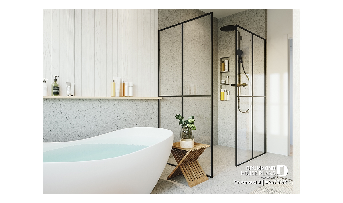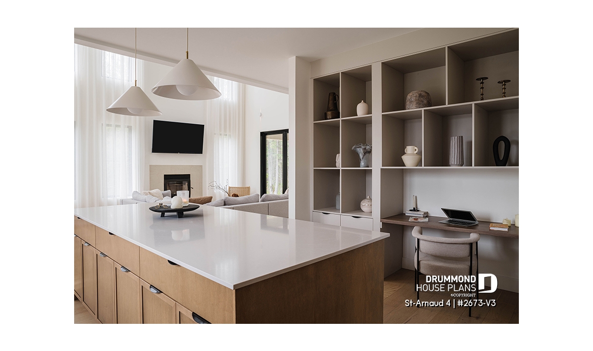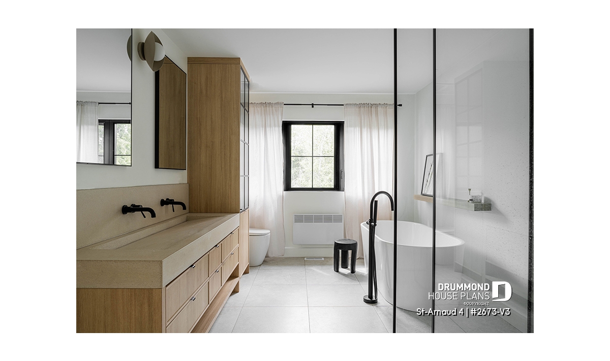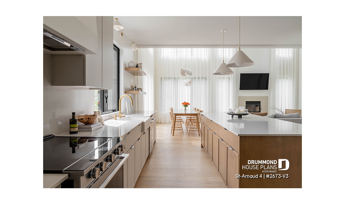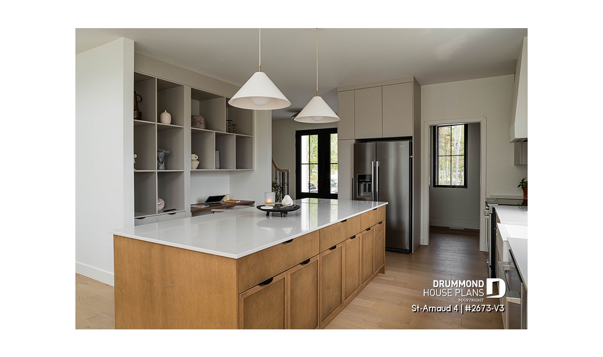 House plan ST-ARNAUD 4 (#2673-V3) is the 4th and smaller version of an already popular collection here at Drummond House Plans! With all the conveniences of its previous Farmhouse versions, the St-Arnaud 4 offers a more refined Scandinavian-inspired look.