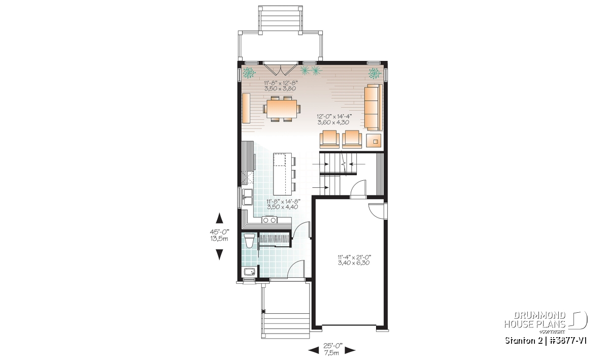 Related models, 3877, 3876 and 3876-V1 are other attractive options for narrow lots.