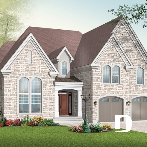 Elevate your dining experience in a spectacular kitchen with window setting, expansive counters, cabinetry, adjacent dining area and breakfast nook. The family room with fireplace has an extra cozy aura. The main-floor master suite enjoys two walk-ins, wonderful windowing, luxurious bathroom. Upstairs, three ample bedrooms bask on the mezzanine with two full baths. This plan provides bonus space above two-car garage.