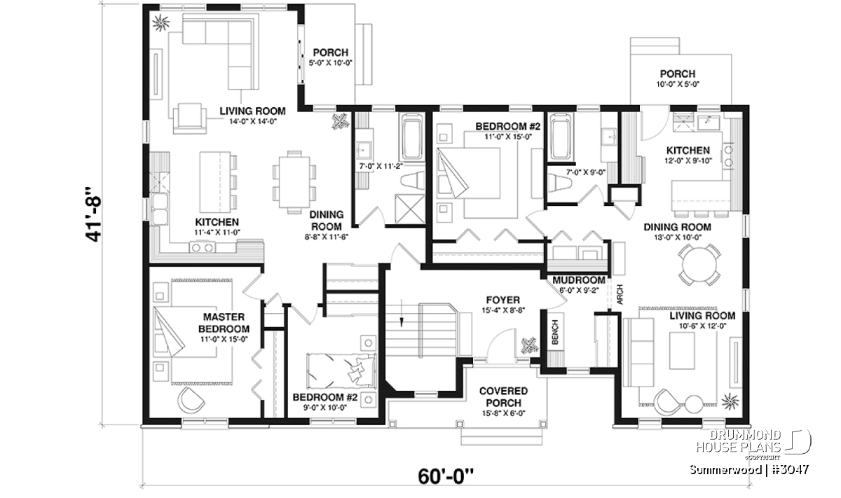 The family suite has two bedrooms oriented to the front of the home with the activities area oriented to the back yard. The grandparent suite is a single-bedroom unit, complete with its own kitchen, dining room, living room and laundry.