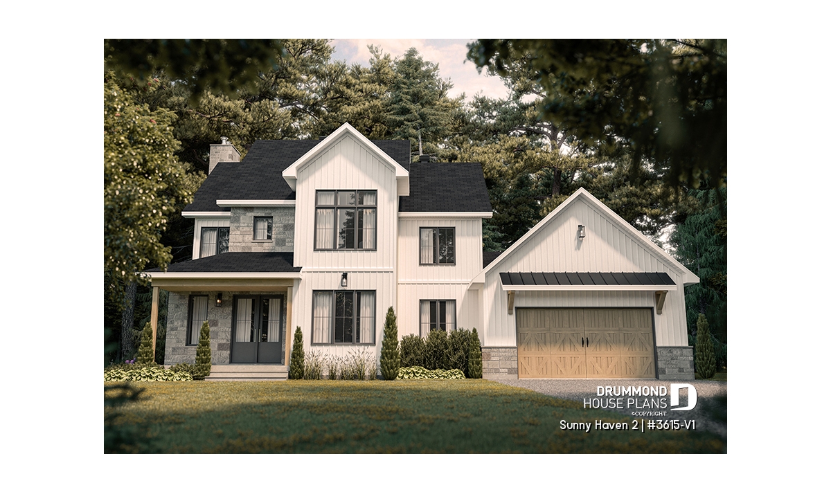 The Sunny Haven 2 (#3615-V1) delivers a refined interpretation of modern Farmhouse design, blending warmth, functionality, and architectural presence. This thoughtfully crafted home plan focuses on everyday comfort while offering a timeless aesthetic that suits a wide range of lifestyles.
