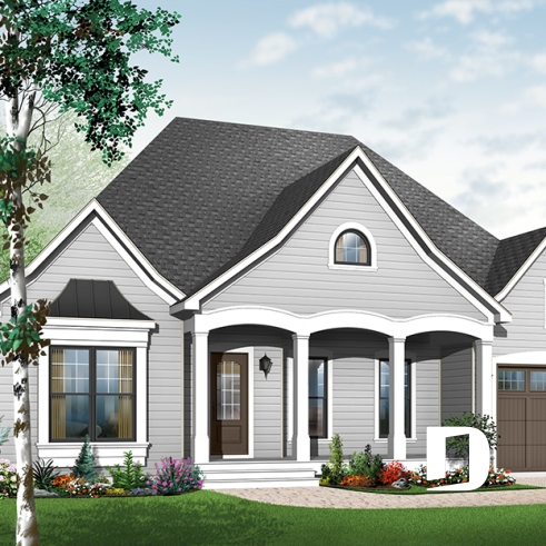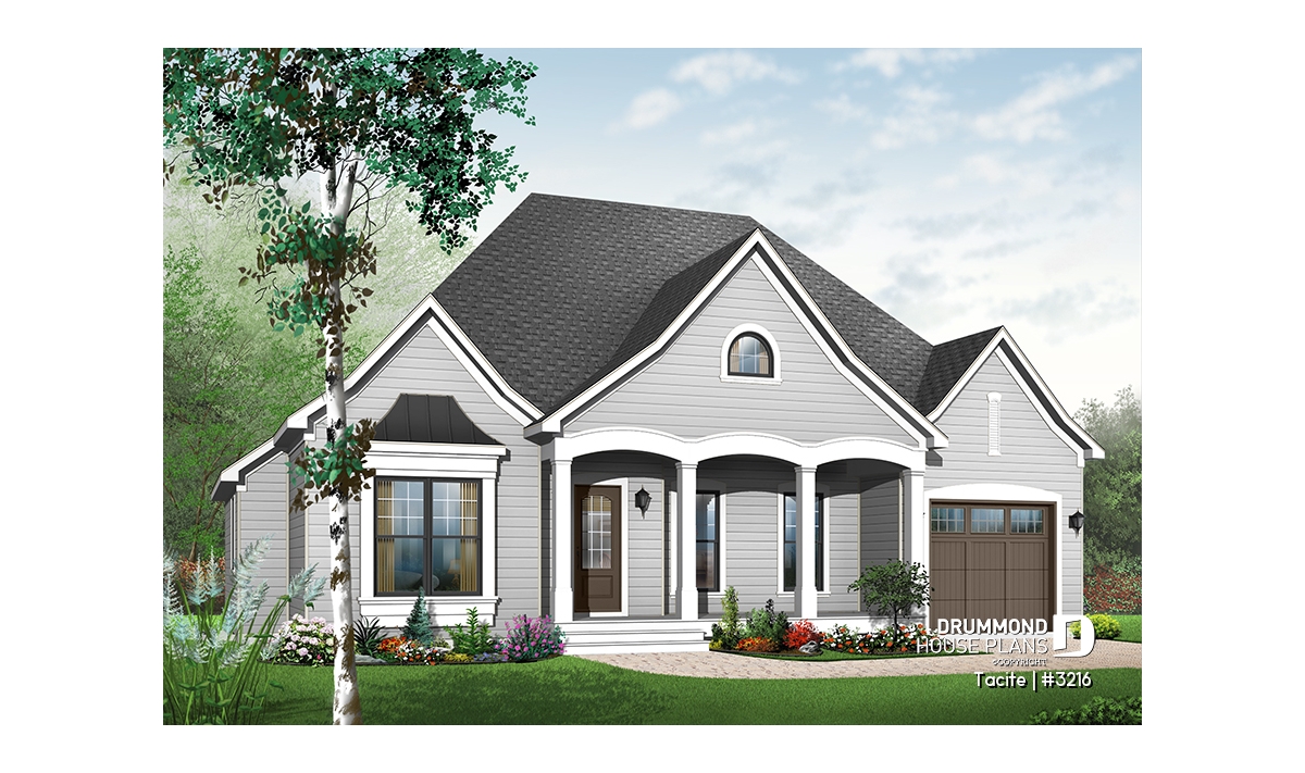 9 Ft ceiling, nice front porch which is sufficiently large, interesting foyer, triple garden doors in dining room, and rather comfortable bathroom.