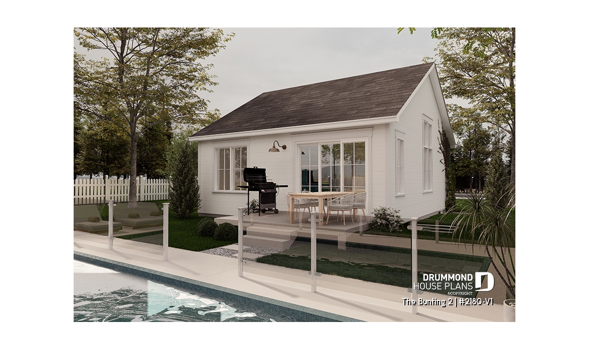 The BATISCAN 2 house plan (plan #2180-V1) offers a total of 896 square feet on each floor (ground floor and basement if finished). You can therefore choose to convert the basement into 2 bedrooms, shower room, family room, storage and office, or simply take the floating slab option or other, if you do not want a basement.