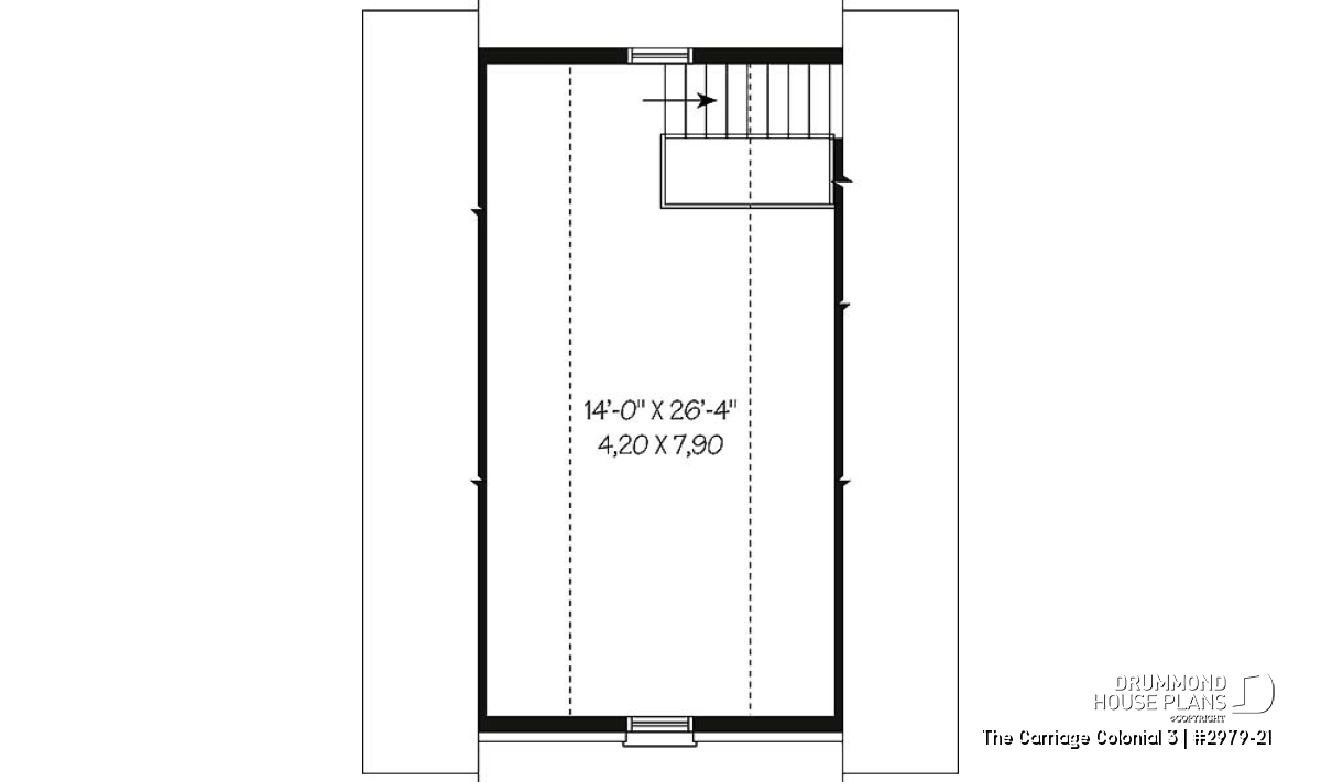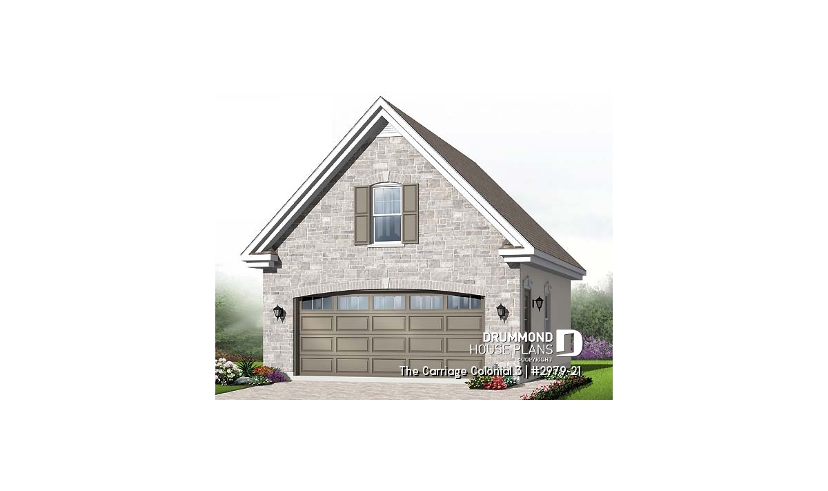 Traditional two-car garage plan with storage on second floor