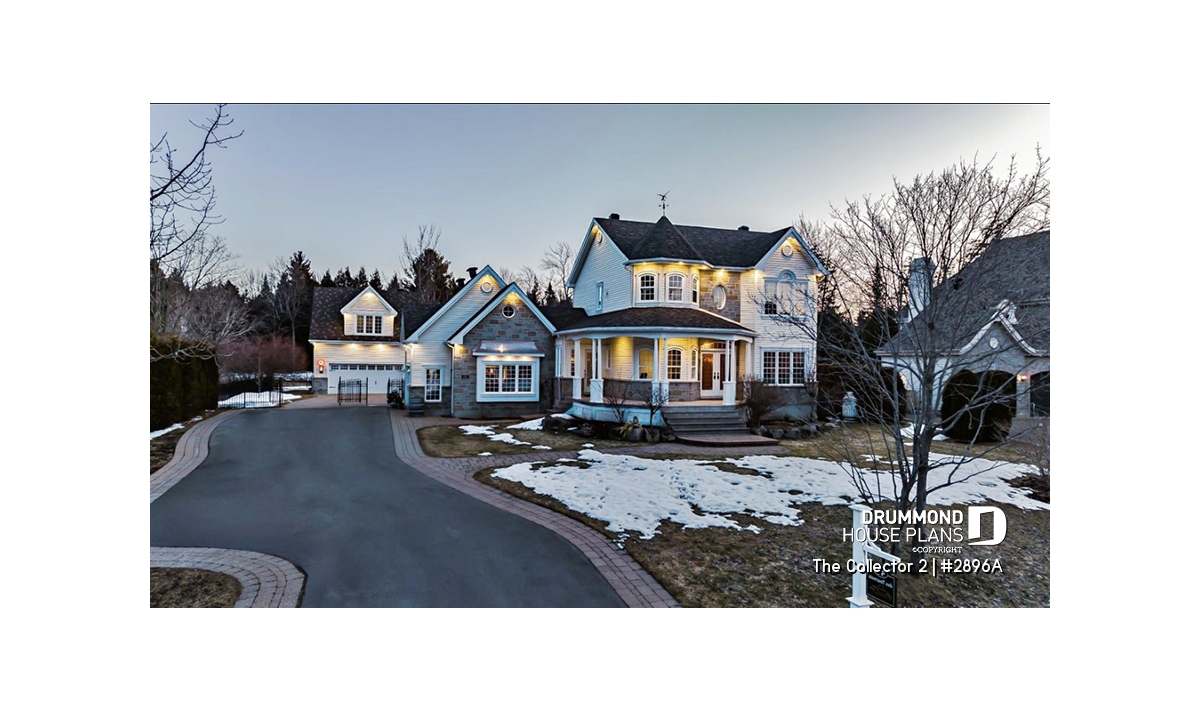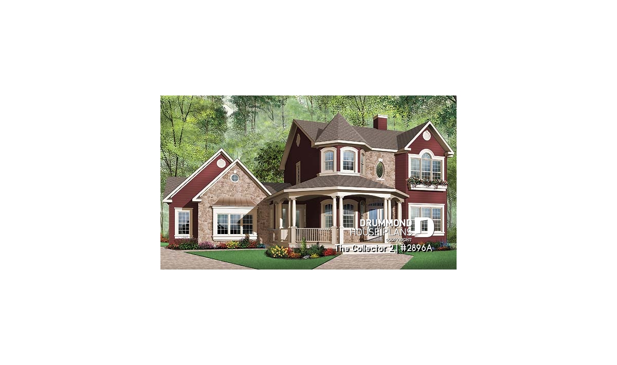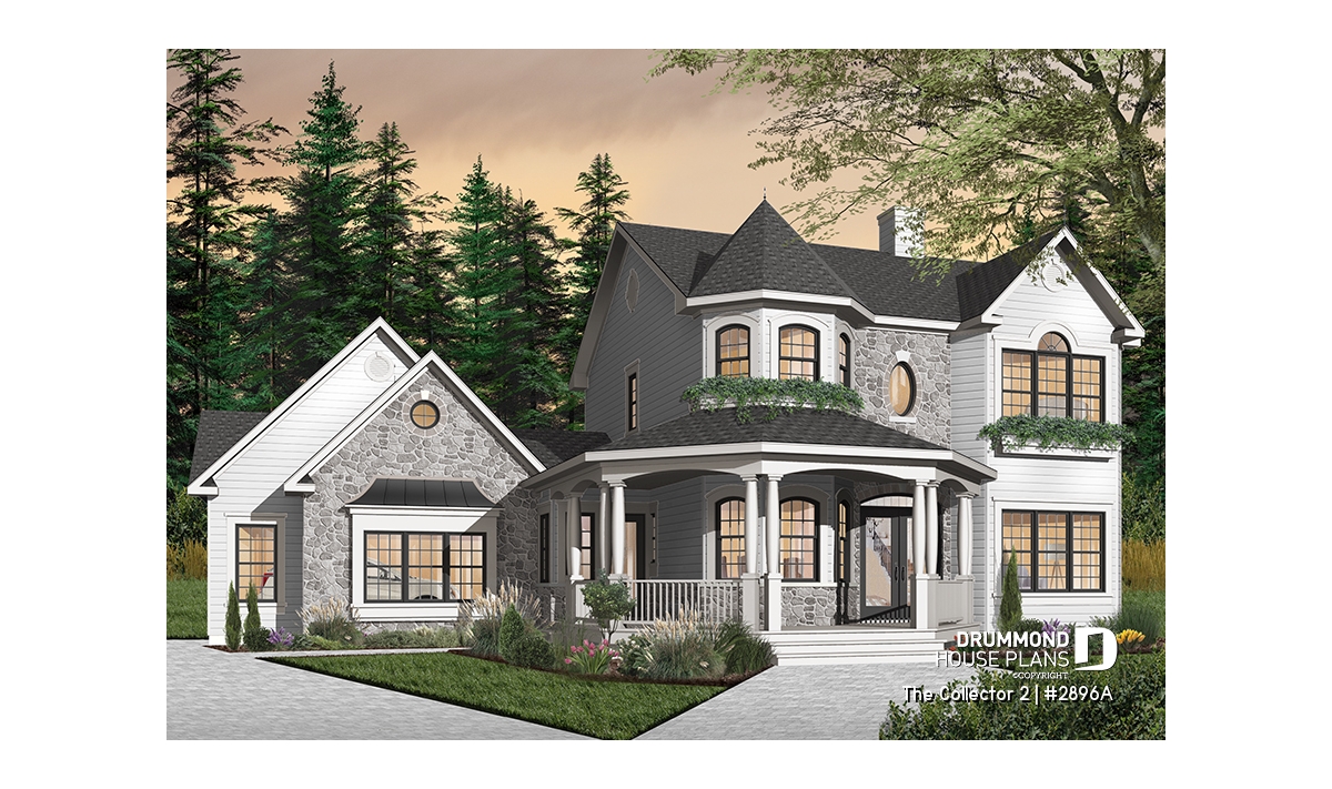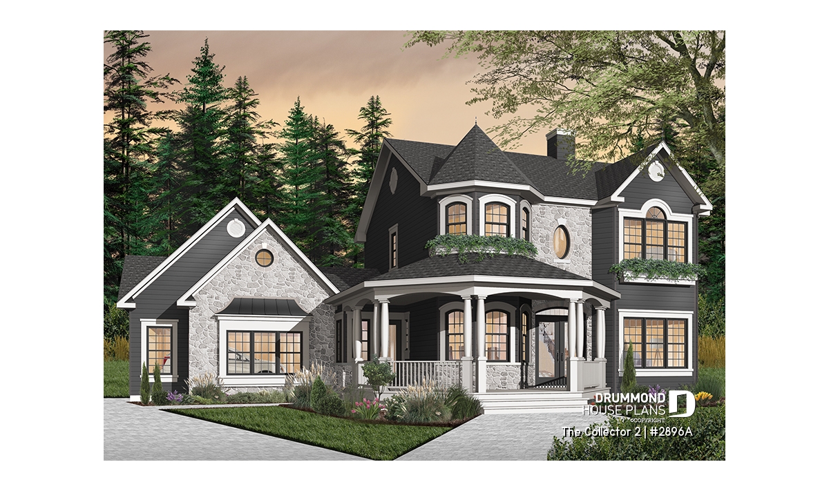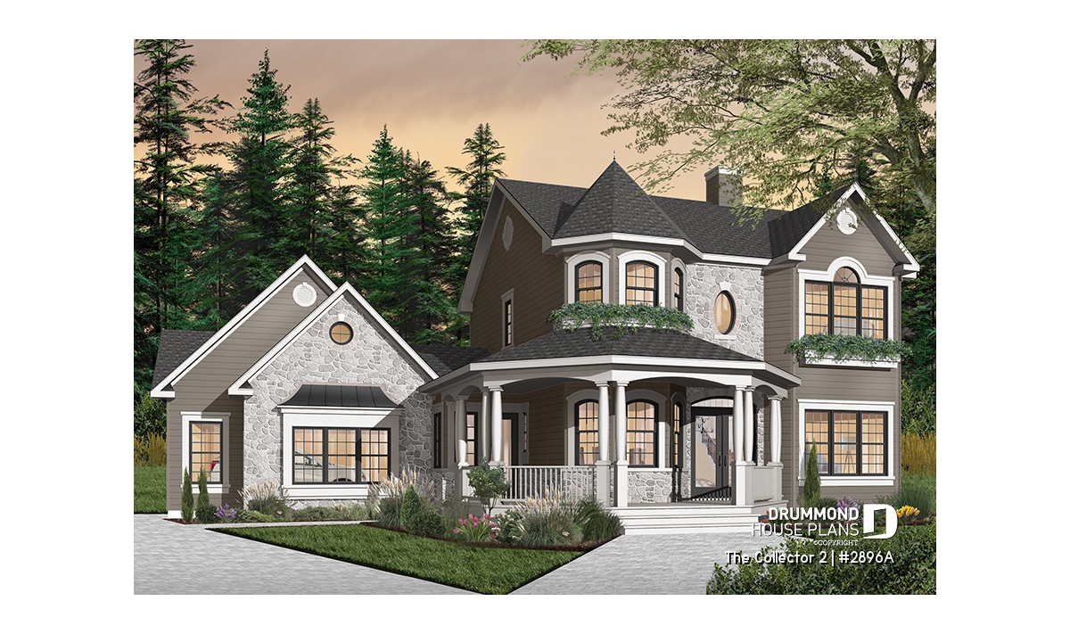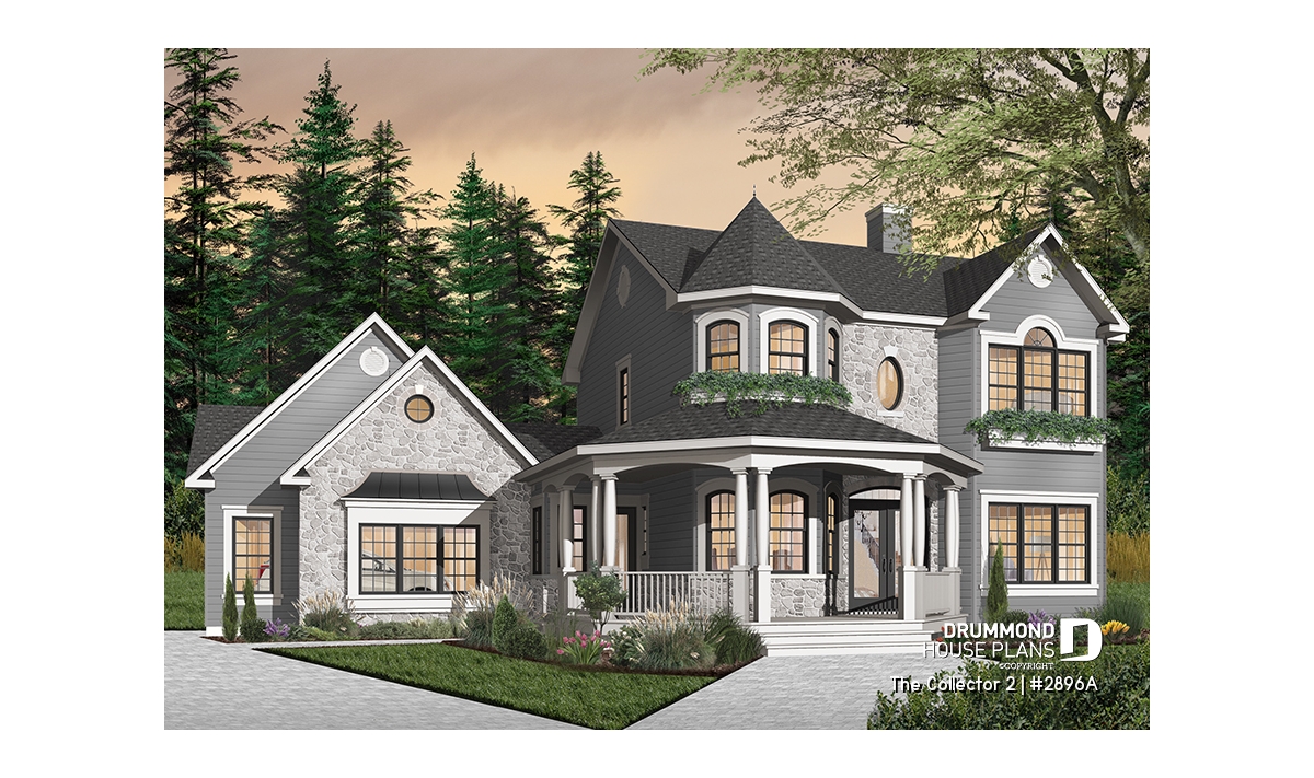 Two-story house plan with Victorian inspiration.