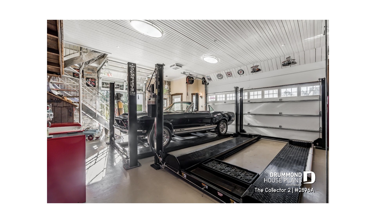 Double garage with bonus space above, accessible by staircase.