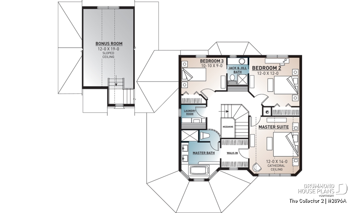 Fireplace, Basement access from garage, Office / Study / Den, Living bonus space, Mezzanine, Ceiling over 8', Master suite upstairs, Side entry garage, Second floor laundry room, Jack & Jill bath, Coffee bar, Pantry, Breakfast nook, Separate bath and shower, Double sinks