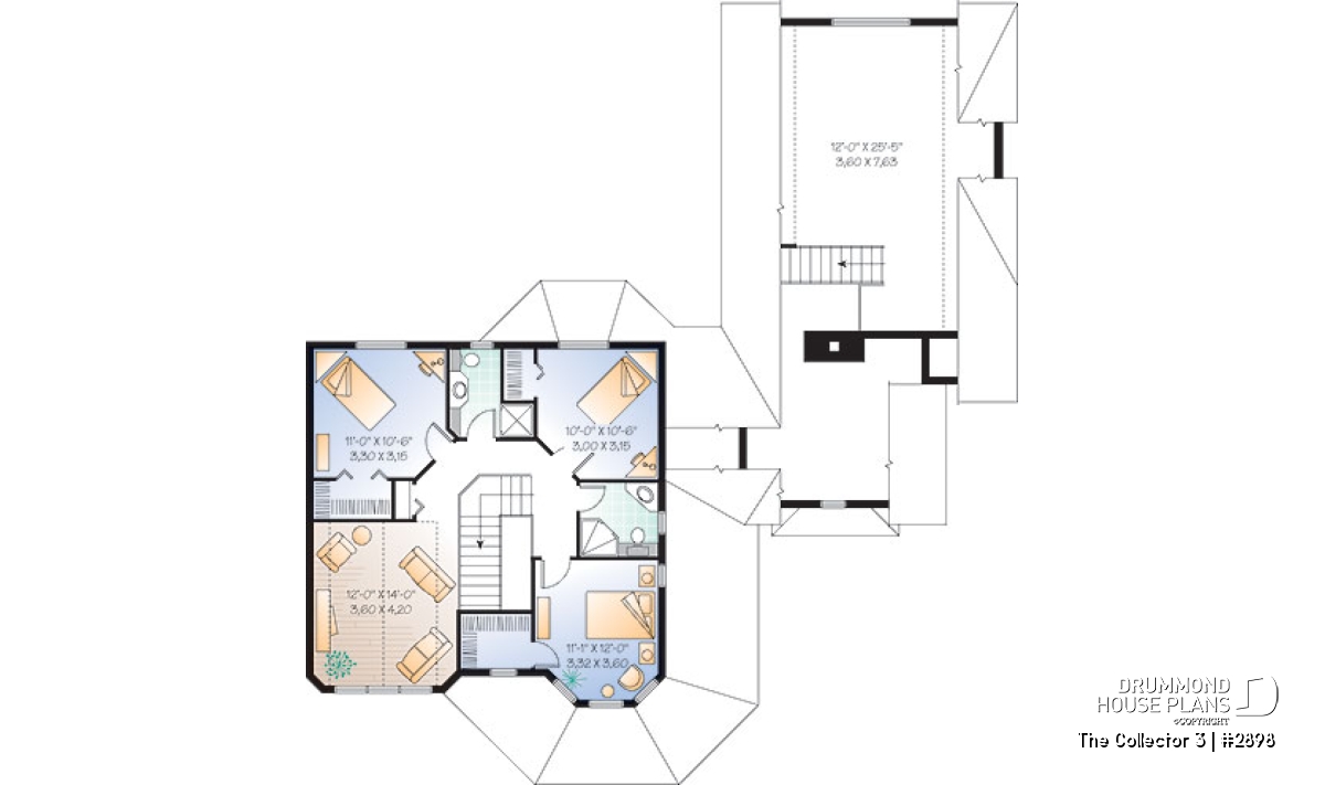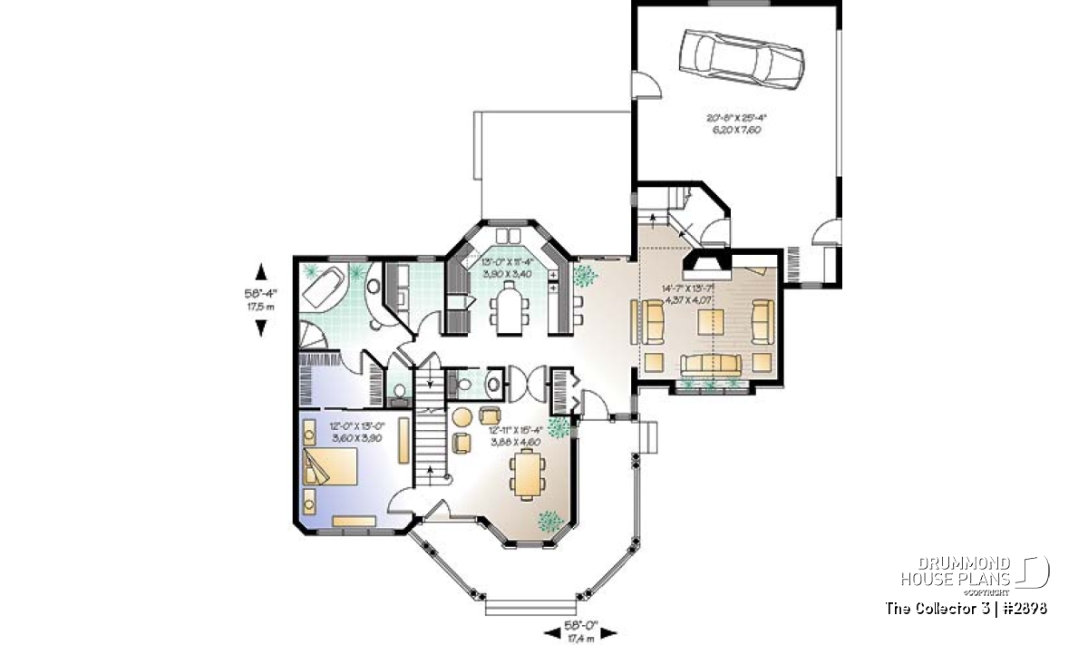 Cathedral ceilings and fireplace in the family room, a wonderful main-level master suite with bath, plus elegant after-dinner alcove in the dining room are a few winning attributes of this 2265 sq.ft. design. A tremendous kitchen feeds a hungry crowd. Three upstairs bedrooms bask in luxury with separate bath and shower rooms, and there’s a bonus space above the garage.